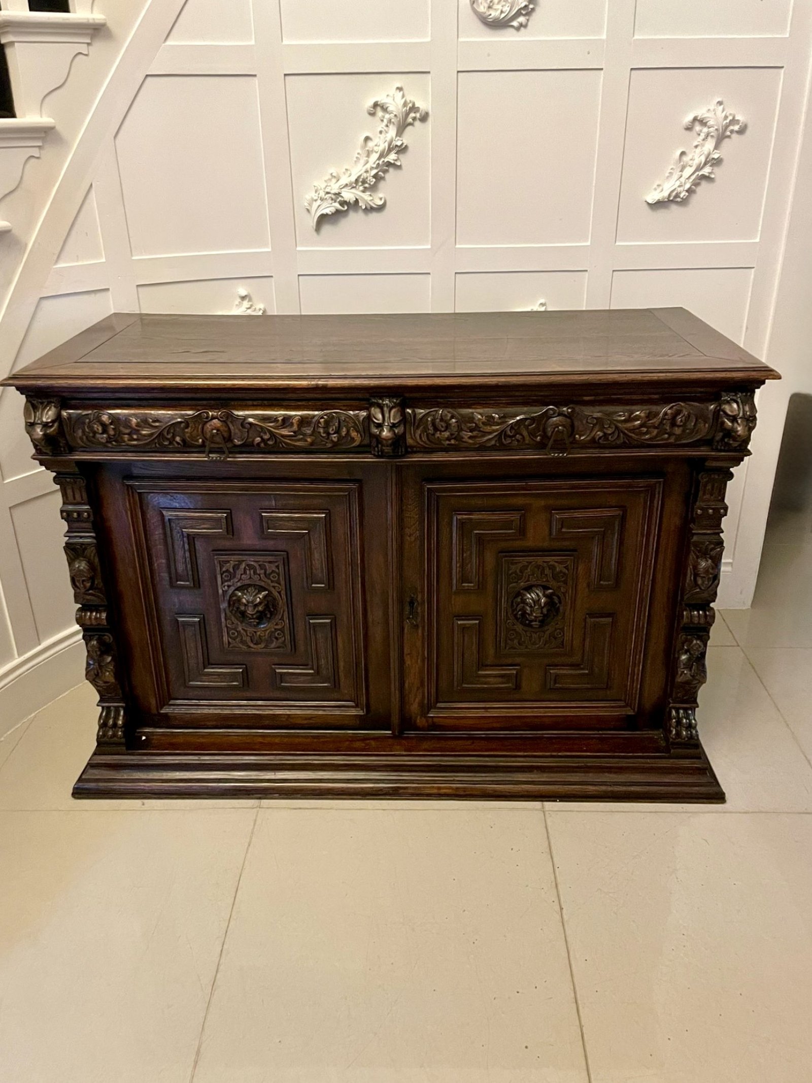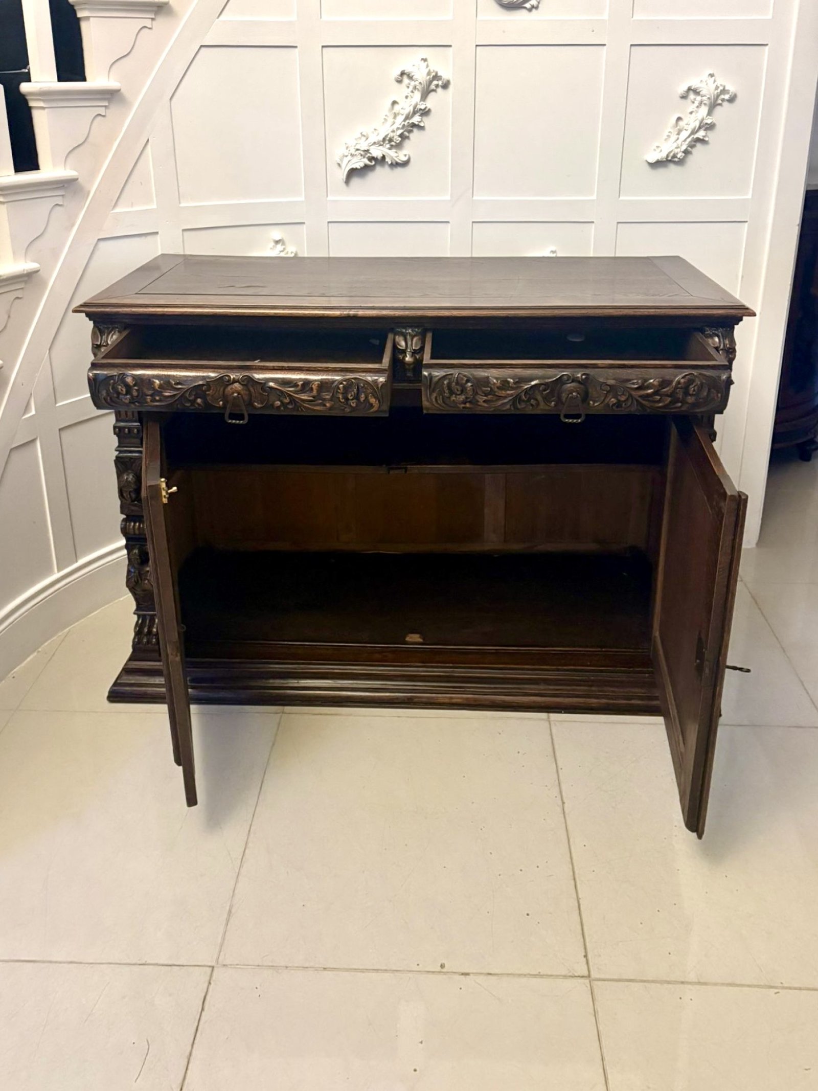 Impressive Quality Antique Carved Oak Sideboard