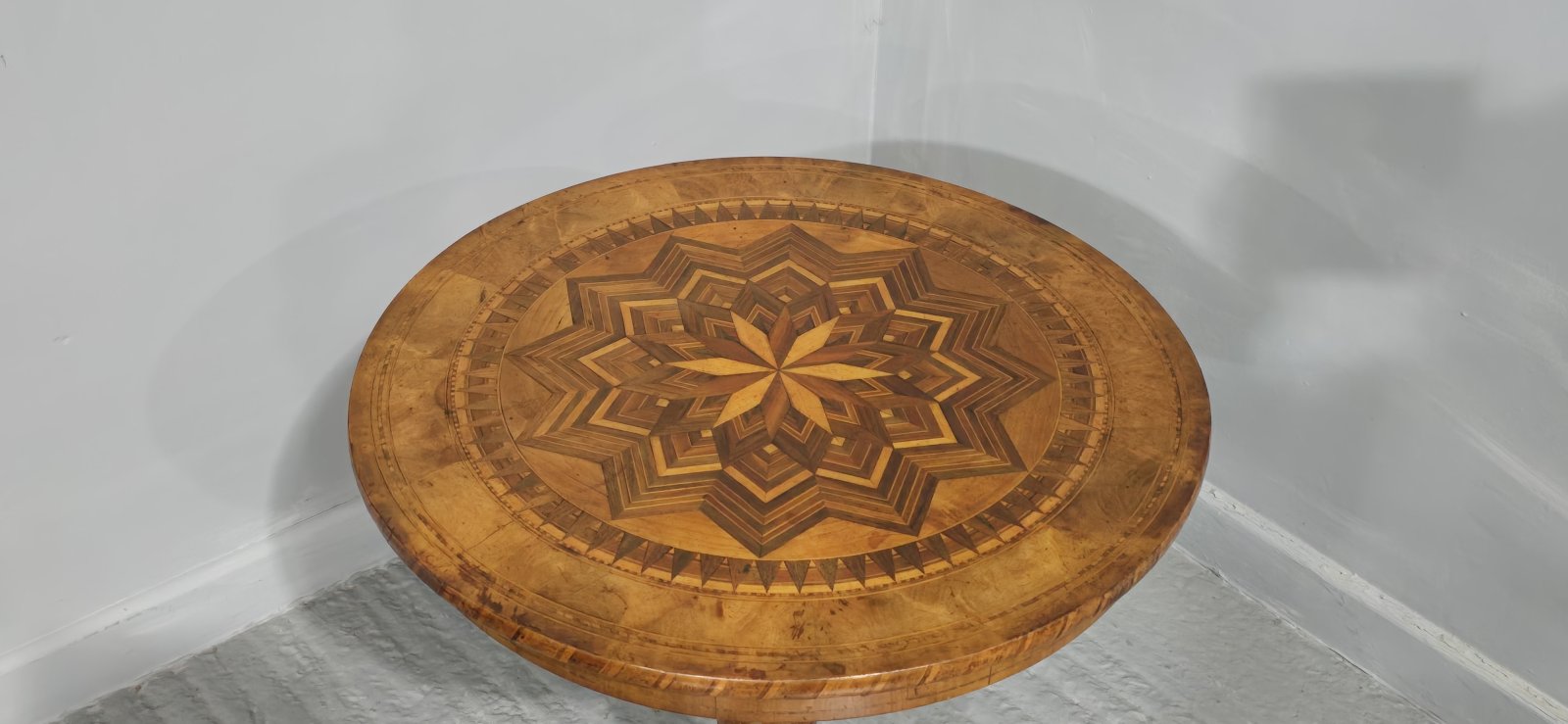 A fine Italian walnut and parquetry specimen table, excellent colour and condition.