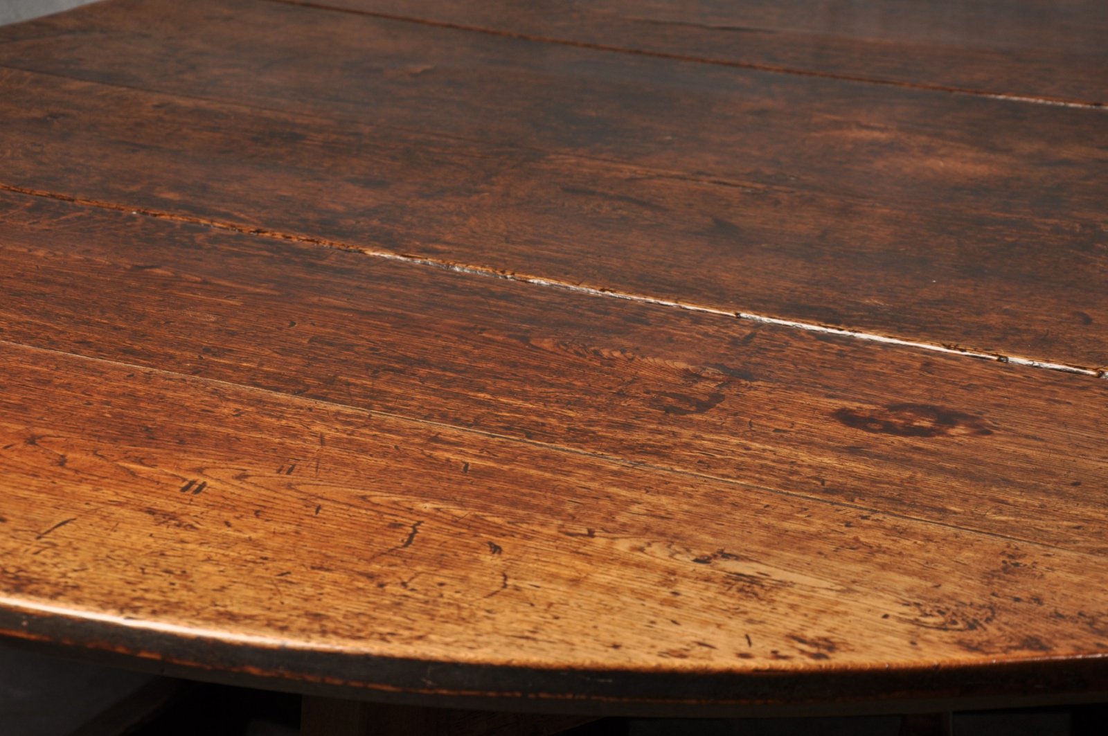 Having a superbly figured six plank top of thick section with chamfered edge. The hinges are original although some have been moved slightly. The Table is in excellent original condition overall and will seat ten people.