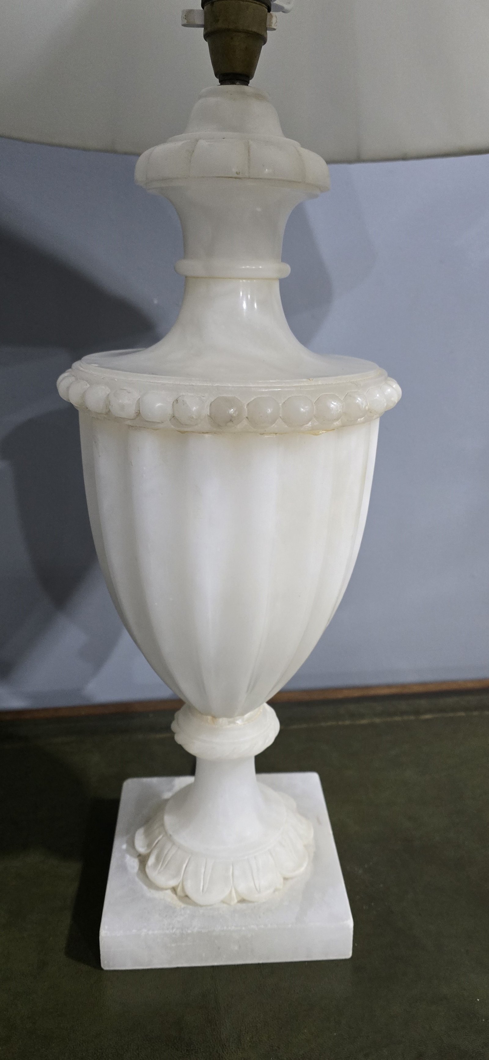 See shipping detailsA super quality large white alabaster table lamp, in very good overall condition, rewired and ready for use.