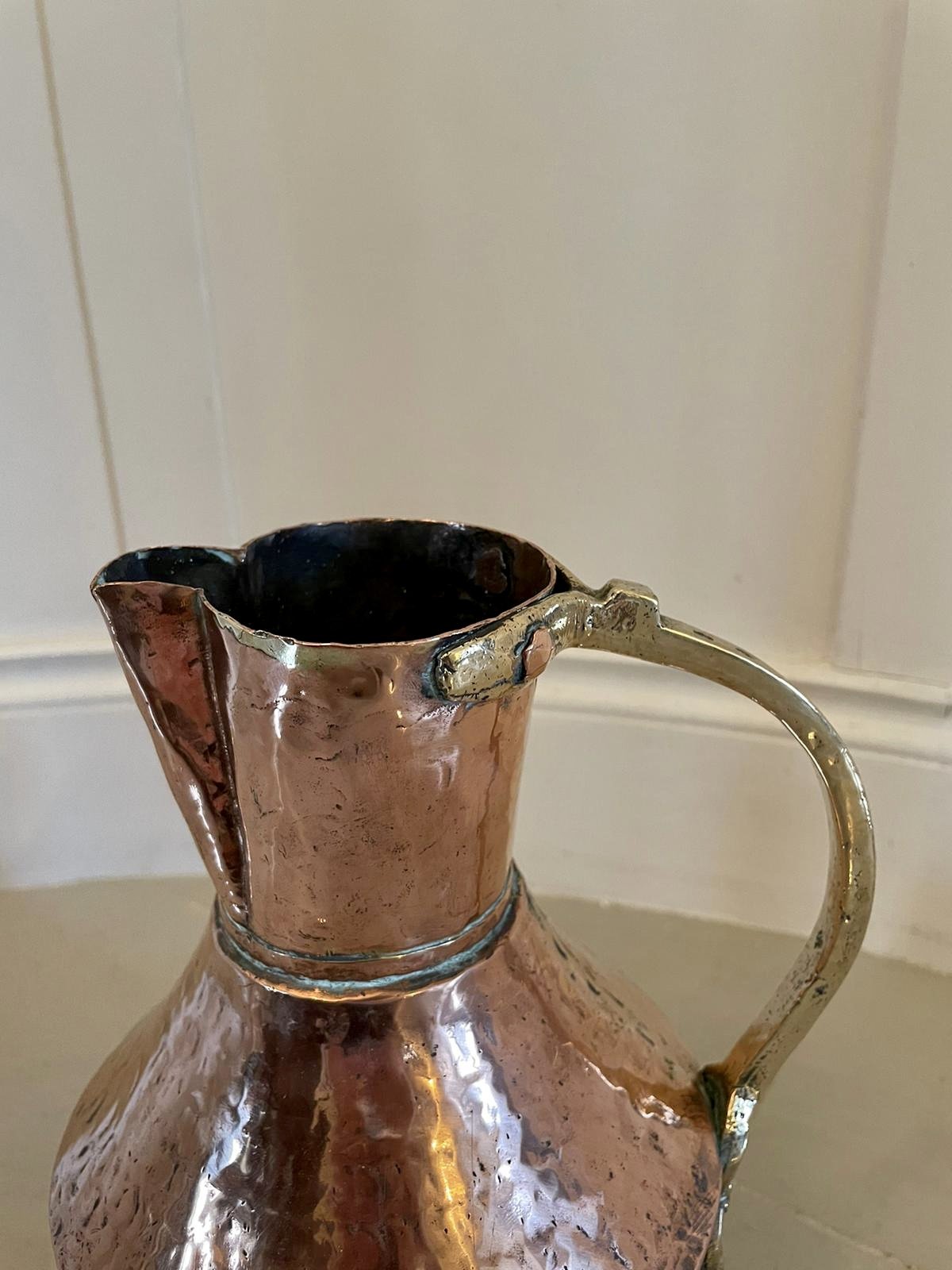 Large Antique Arts and Crafts Copper and Brass Milk Jug