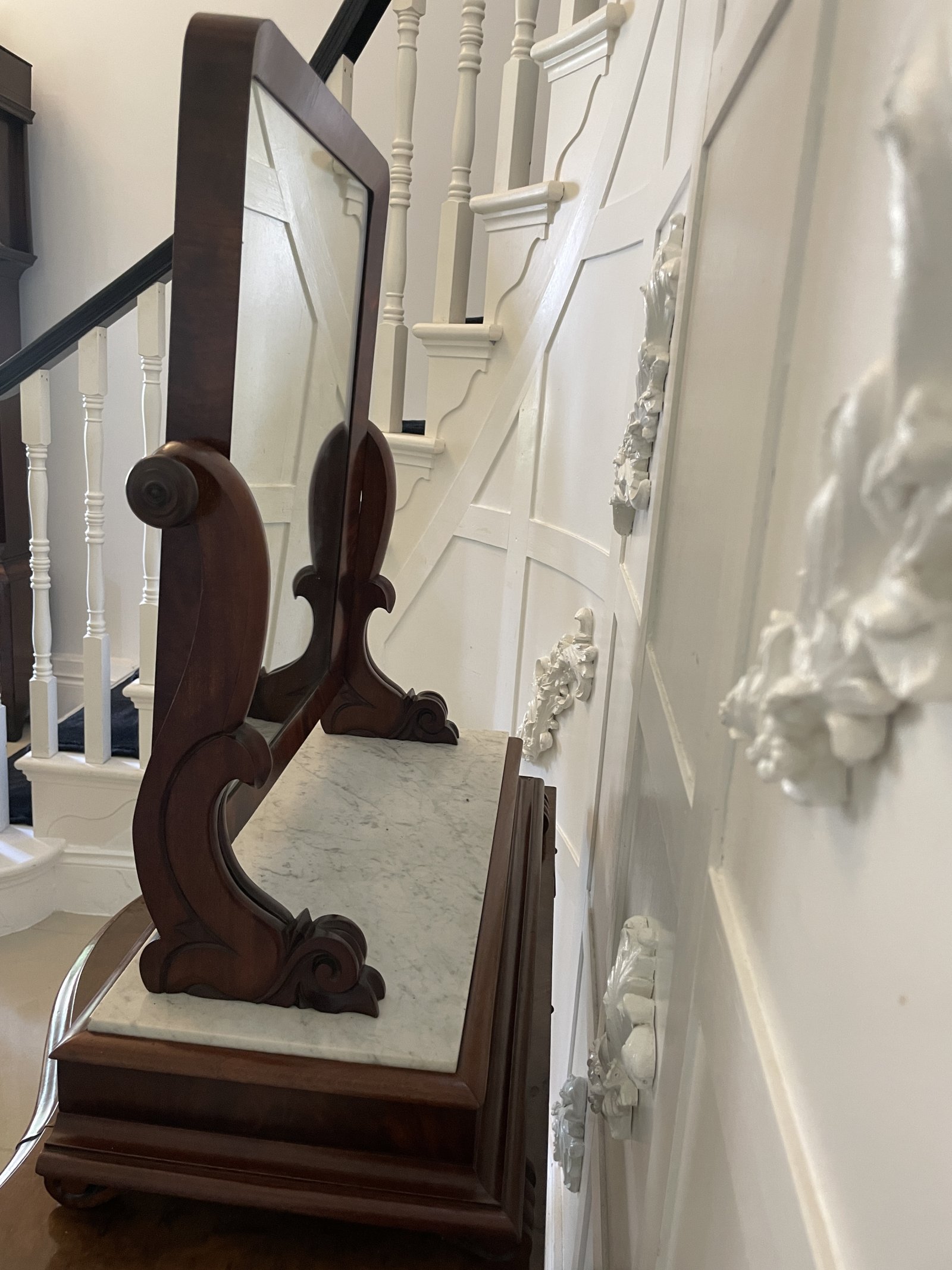 Large Antique Victorian Mahogany and Marble Topped Swing Mirror