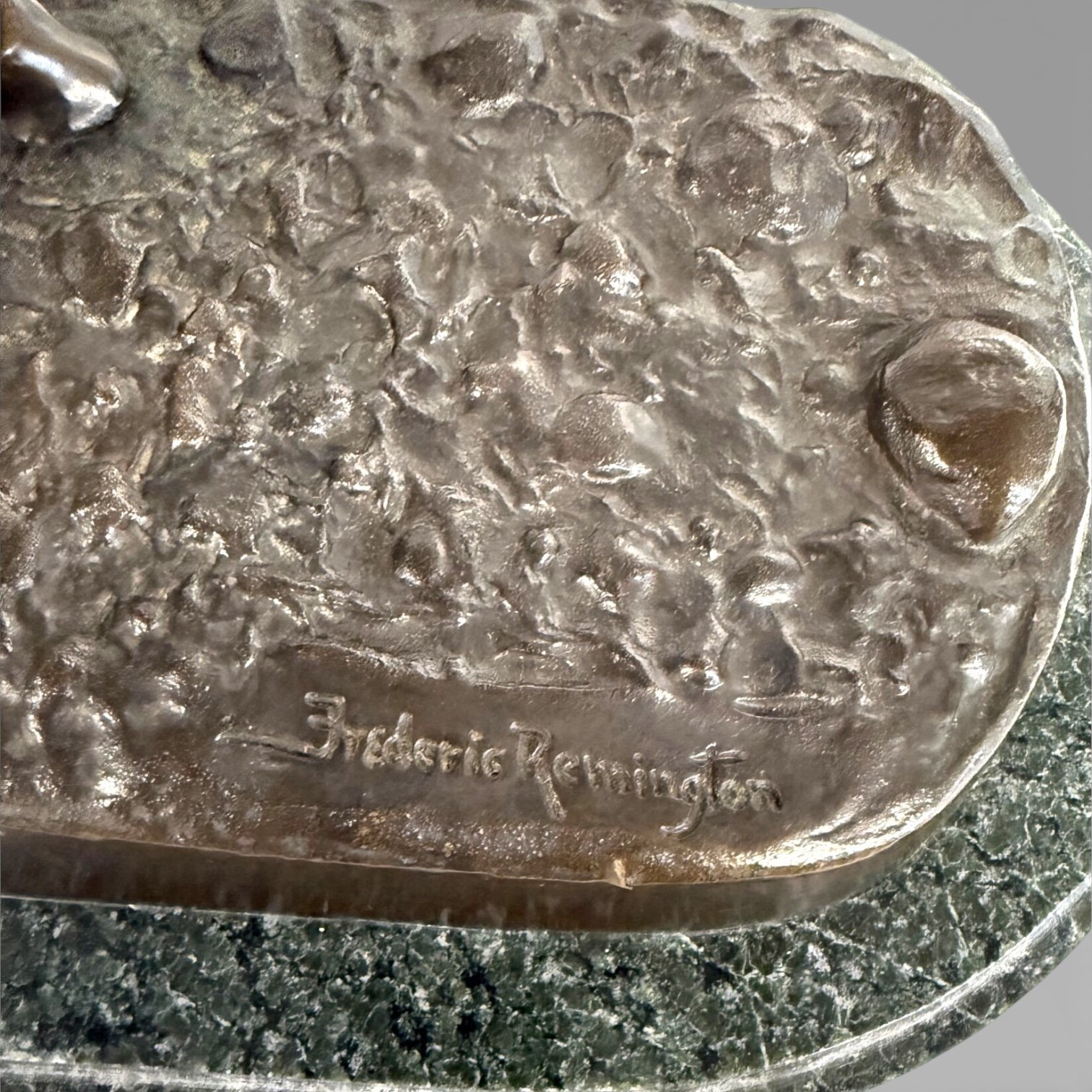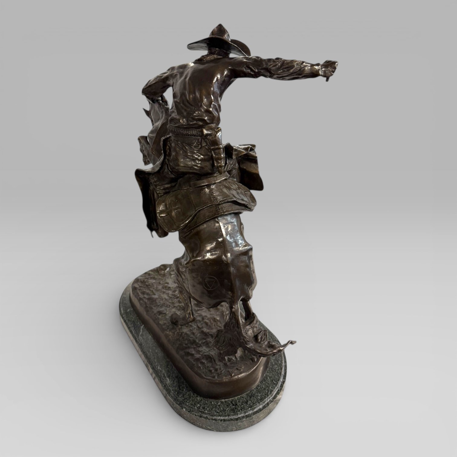 Signed to the base Frederic Remington, with an additional symbol stamped to the back.
