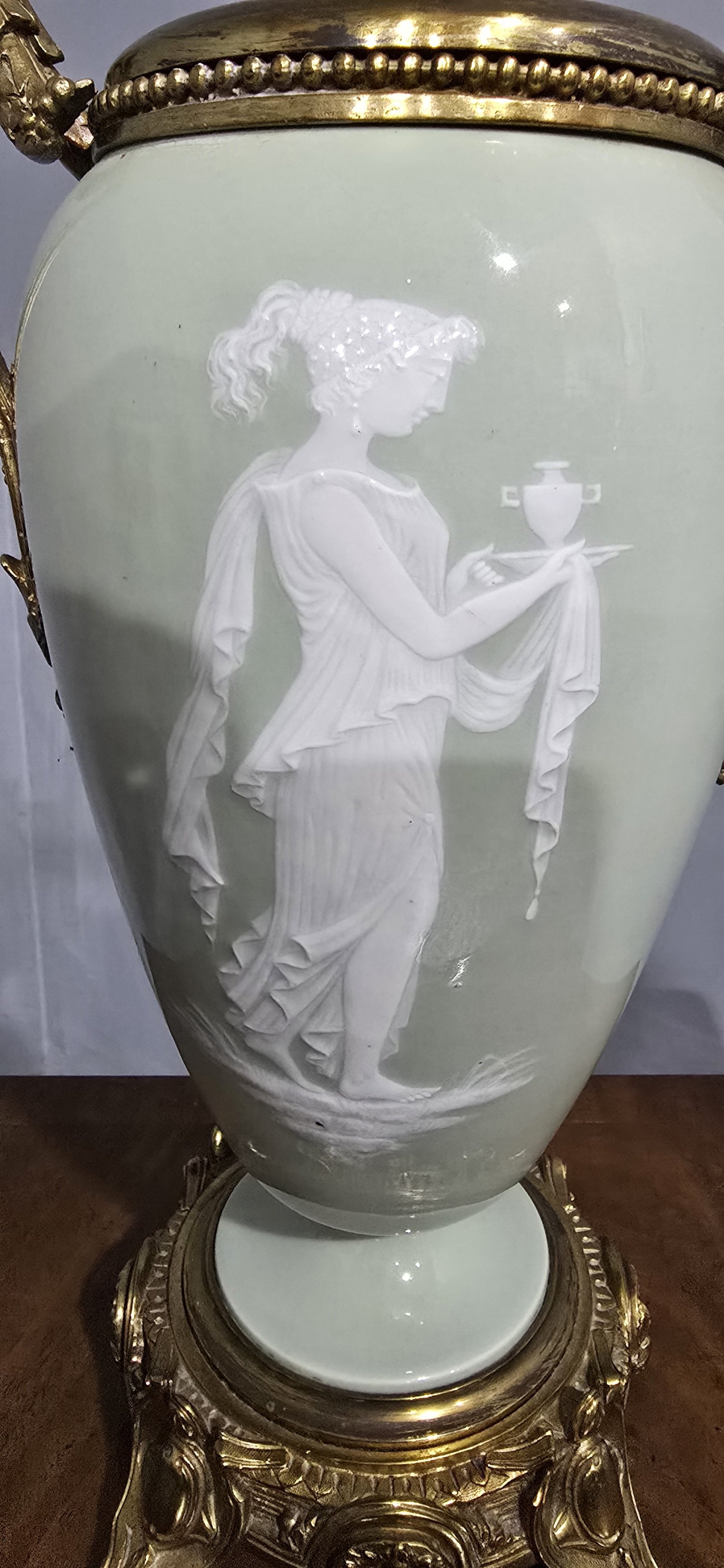 A large outstanding quality French pate-sur-pate table, top qualty ormolu mounts, in excellent overall condition.
