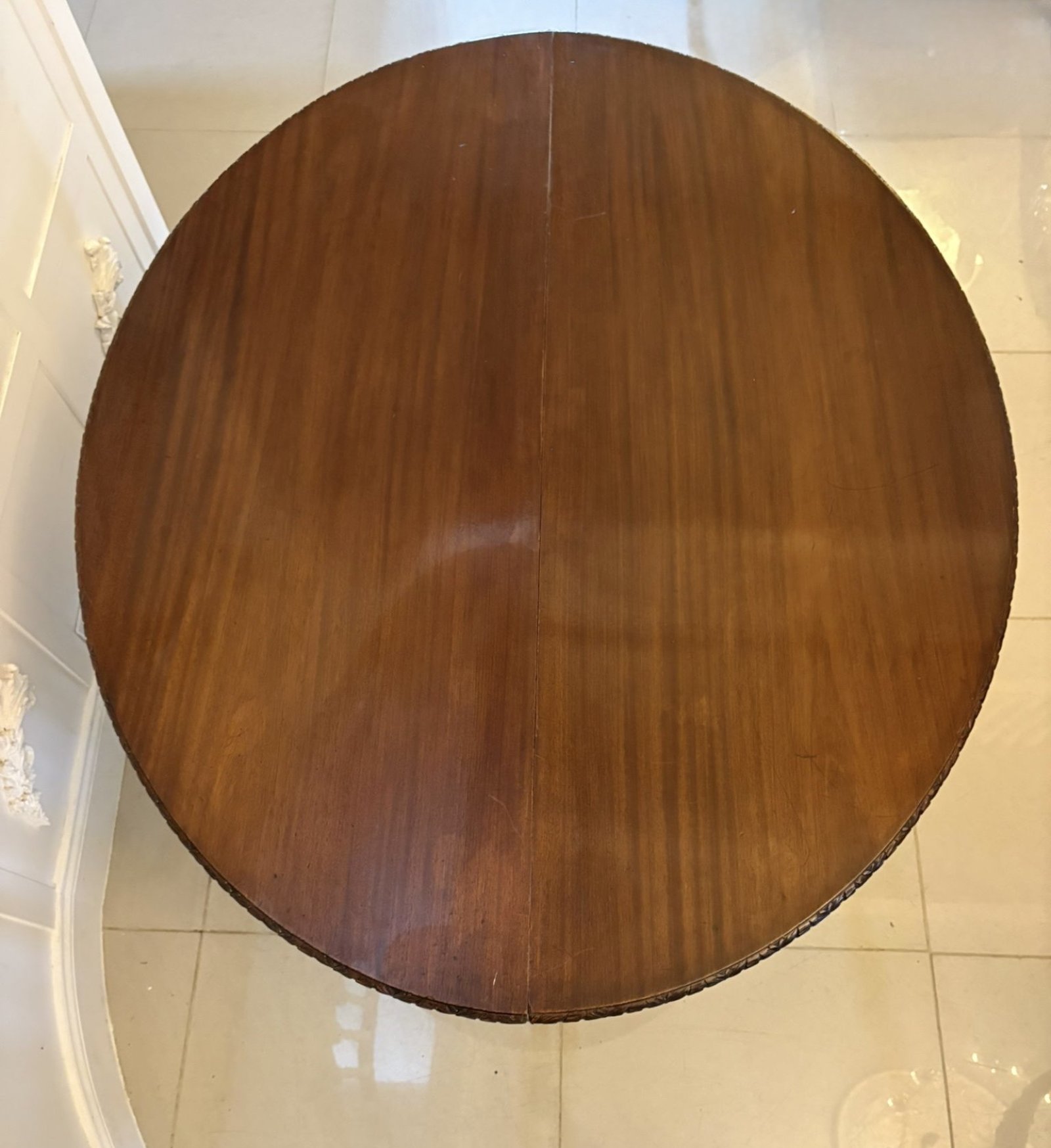 The pair can be positioned together to form an attractive 6 seater circular dining or centre table, or separately as graceful console tables — ideal for an entryway, dining room, or drawing room. The craftsmanship reflects classical Victorian refinement with a warm polished patina that enhances the natural grain of the timber.