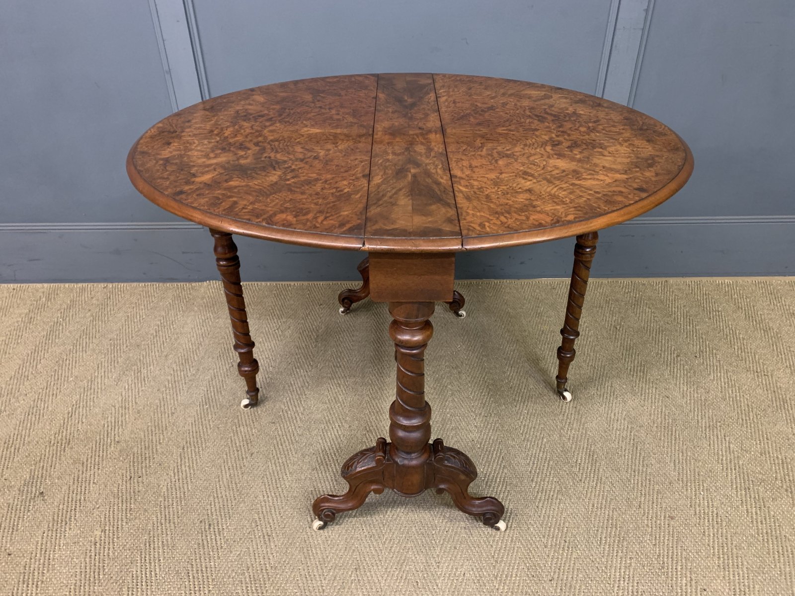 Large Victorian Burr Walnut Sutherland Table