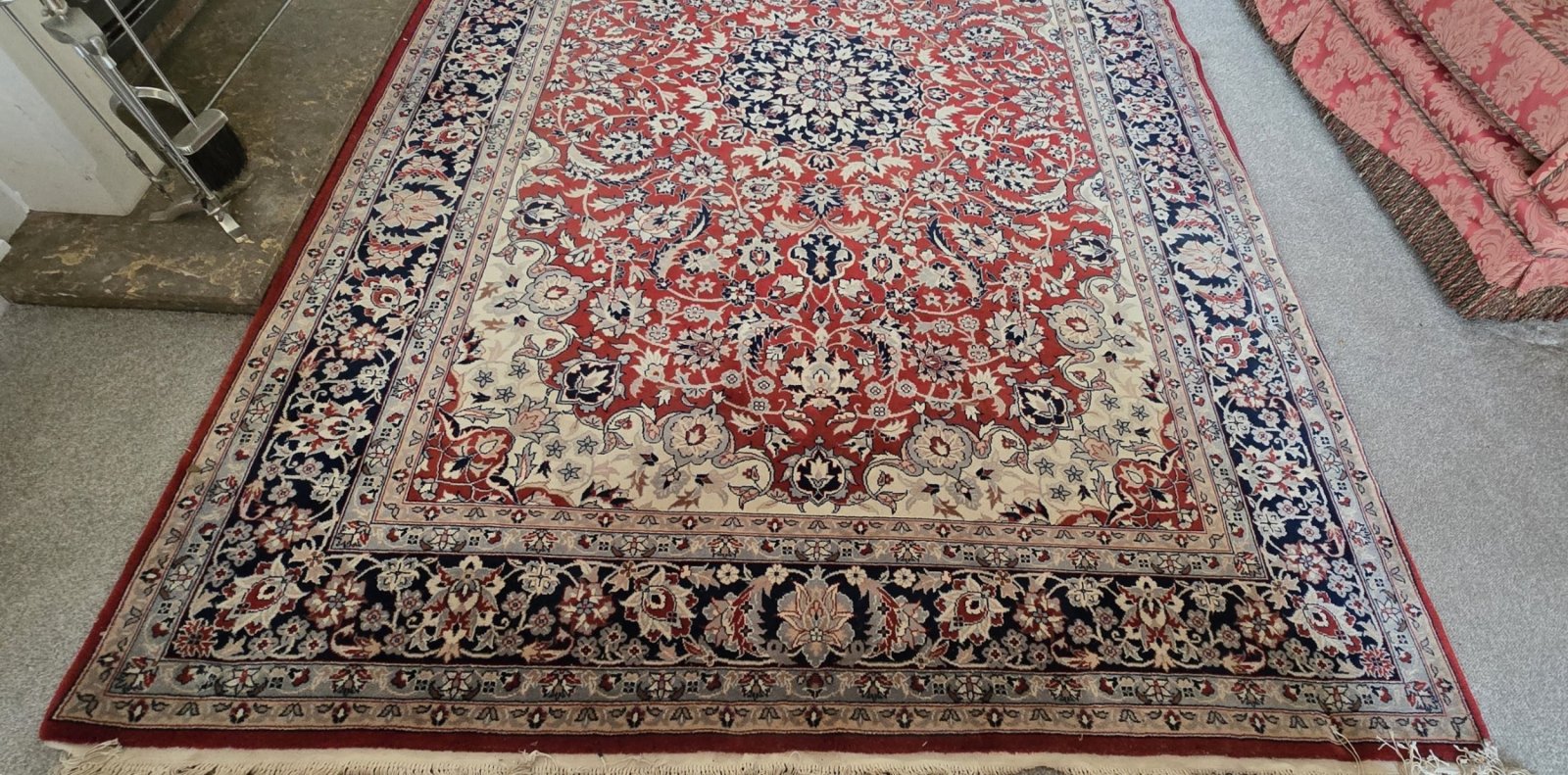 A superb multi coloured large carpet with fringing, hand knotted, probably turkish, in excellent overall condition.