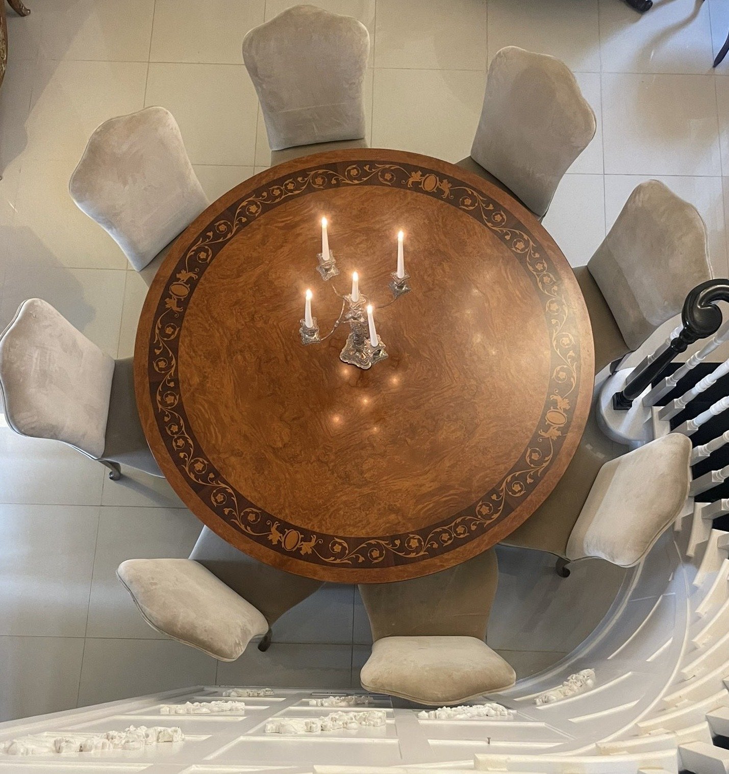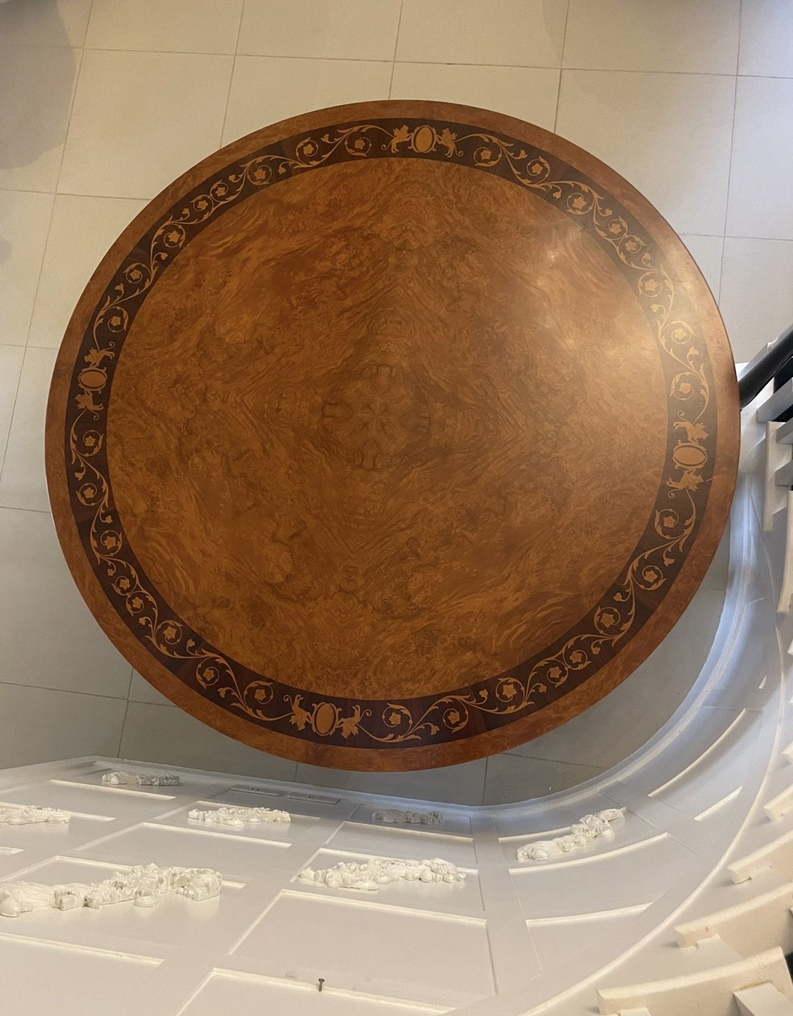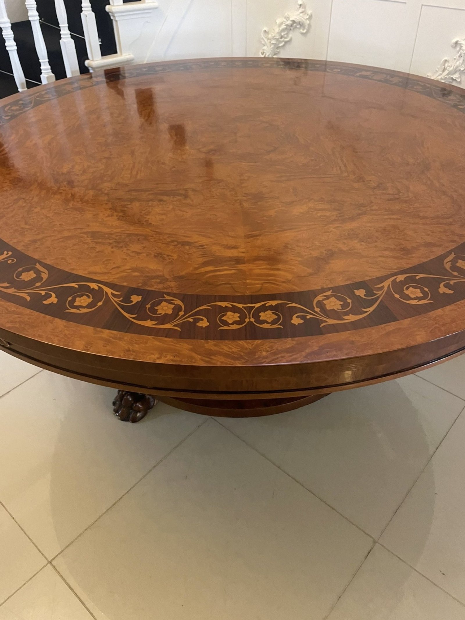 Magnificent quality 8 seater antique burr walnut marquetry inlaid carved gilded centre/dining table
