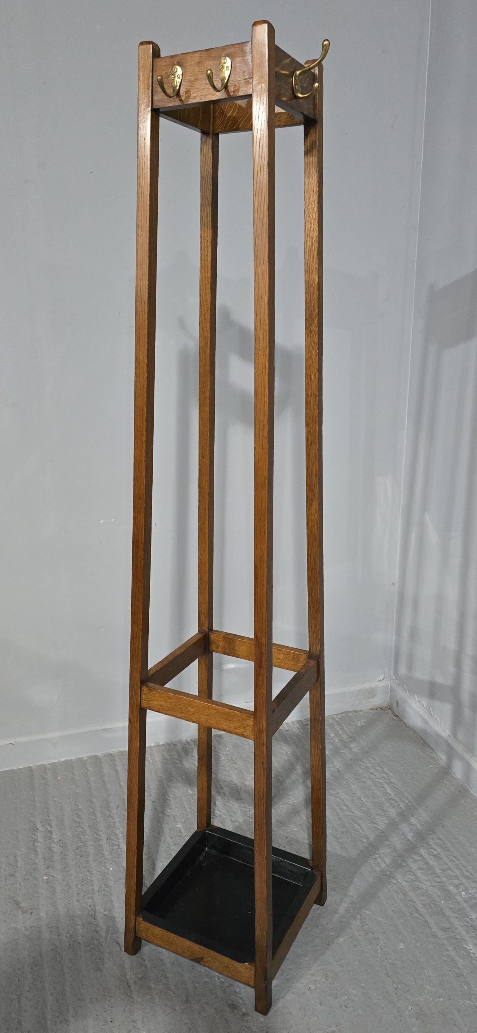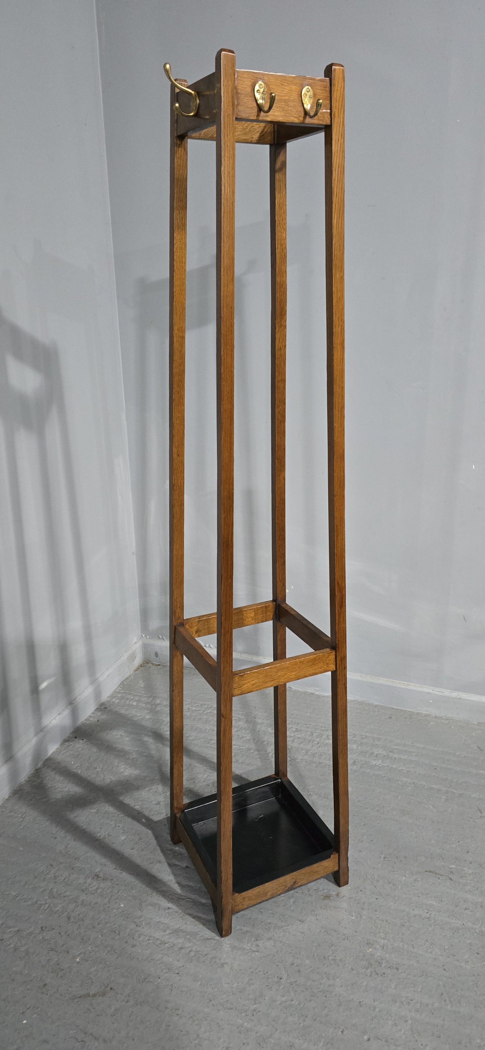 An early to 20th century oak cloakroom hat and coat stand, the base with four-section provision for walking sticks and umbrellas, in excellent overall condition.