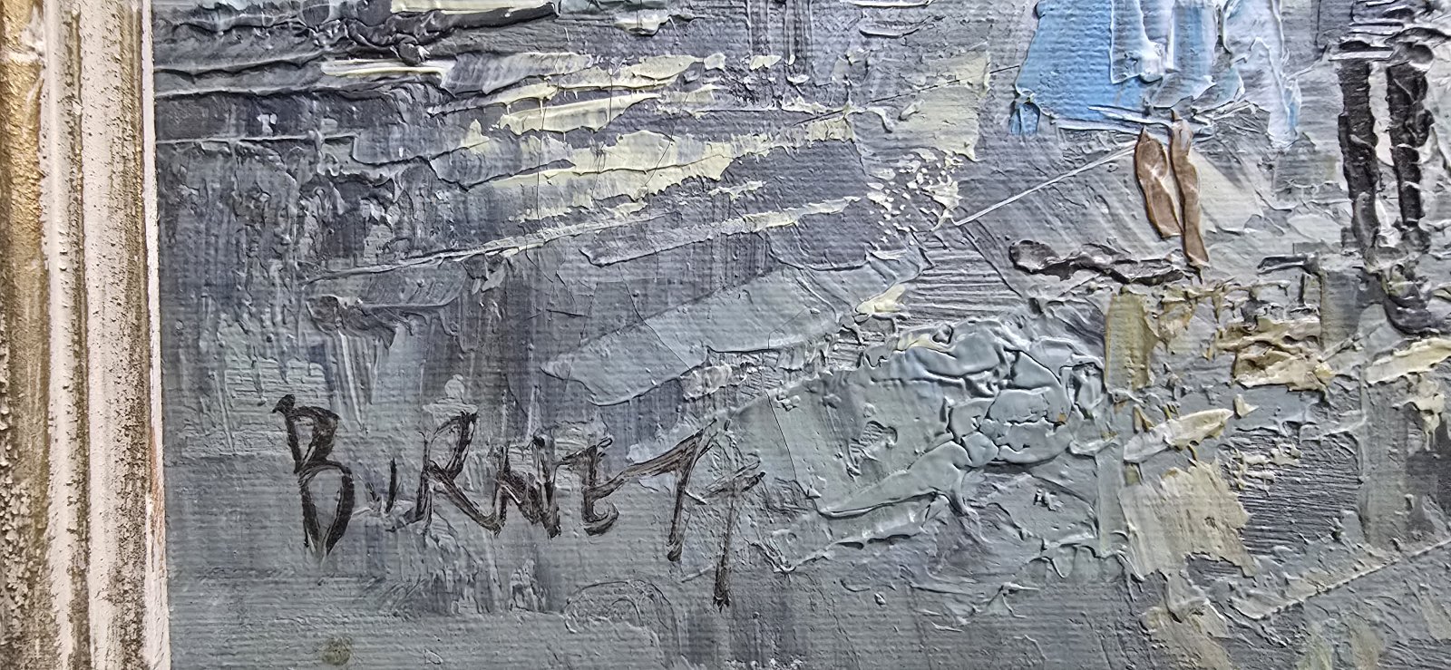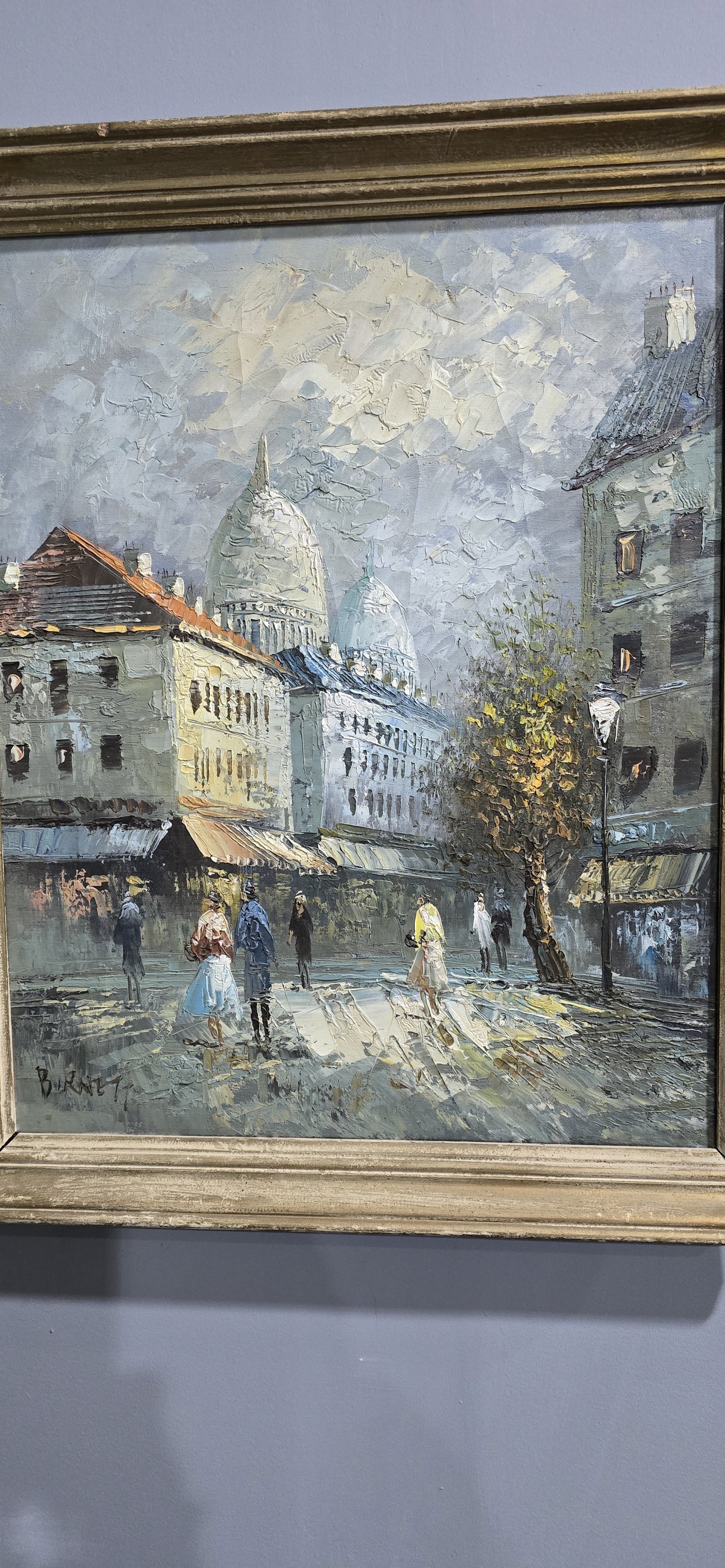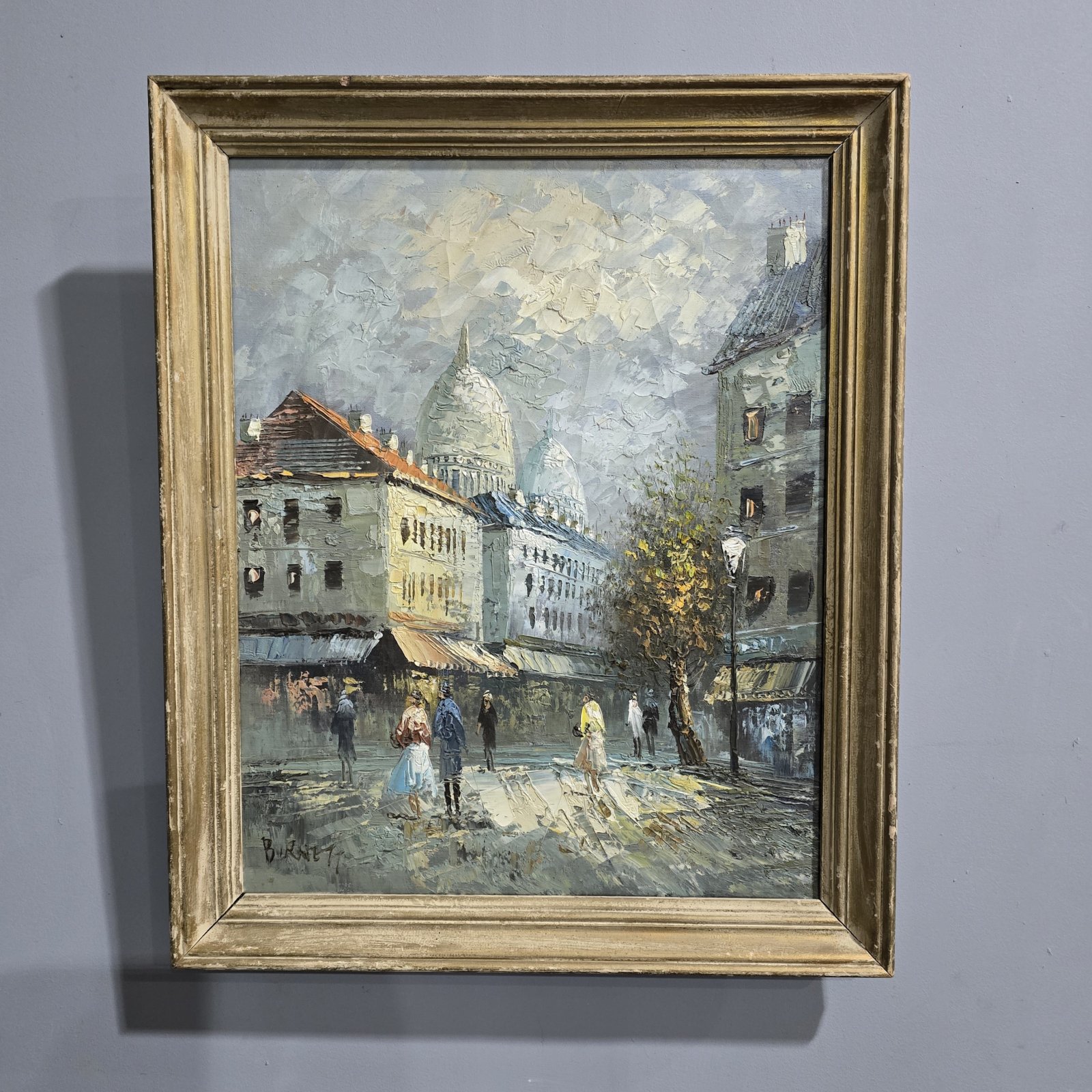 A very nice oil on canvas of a French street scene, painted by Caroline Burnett, American artist, third quarter of C19th.