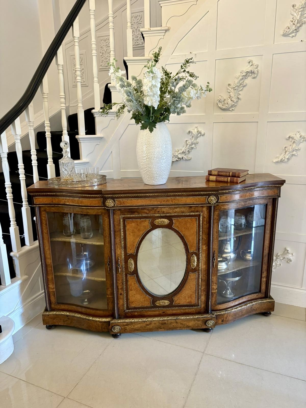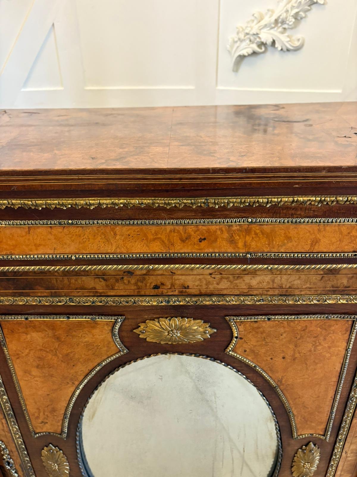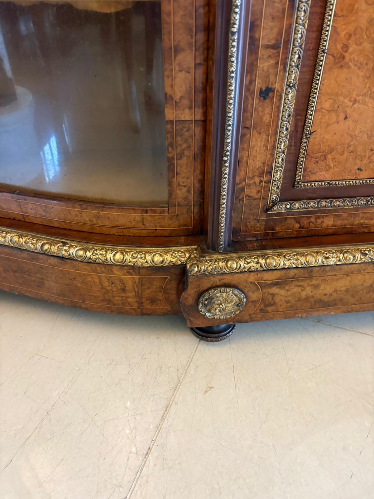 Outstanding Quality Antique Victorian Burr Walnut Ormolu Mounted Credenza
