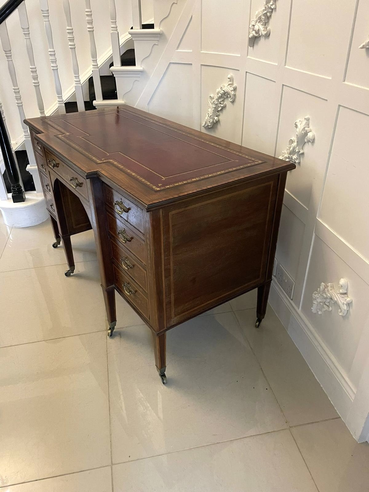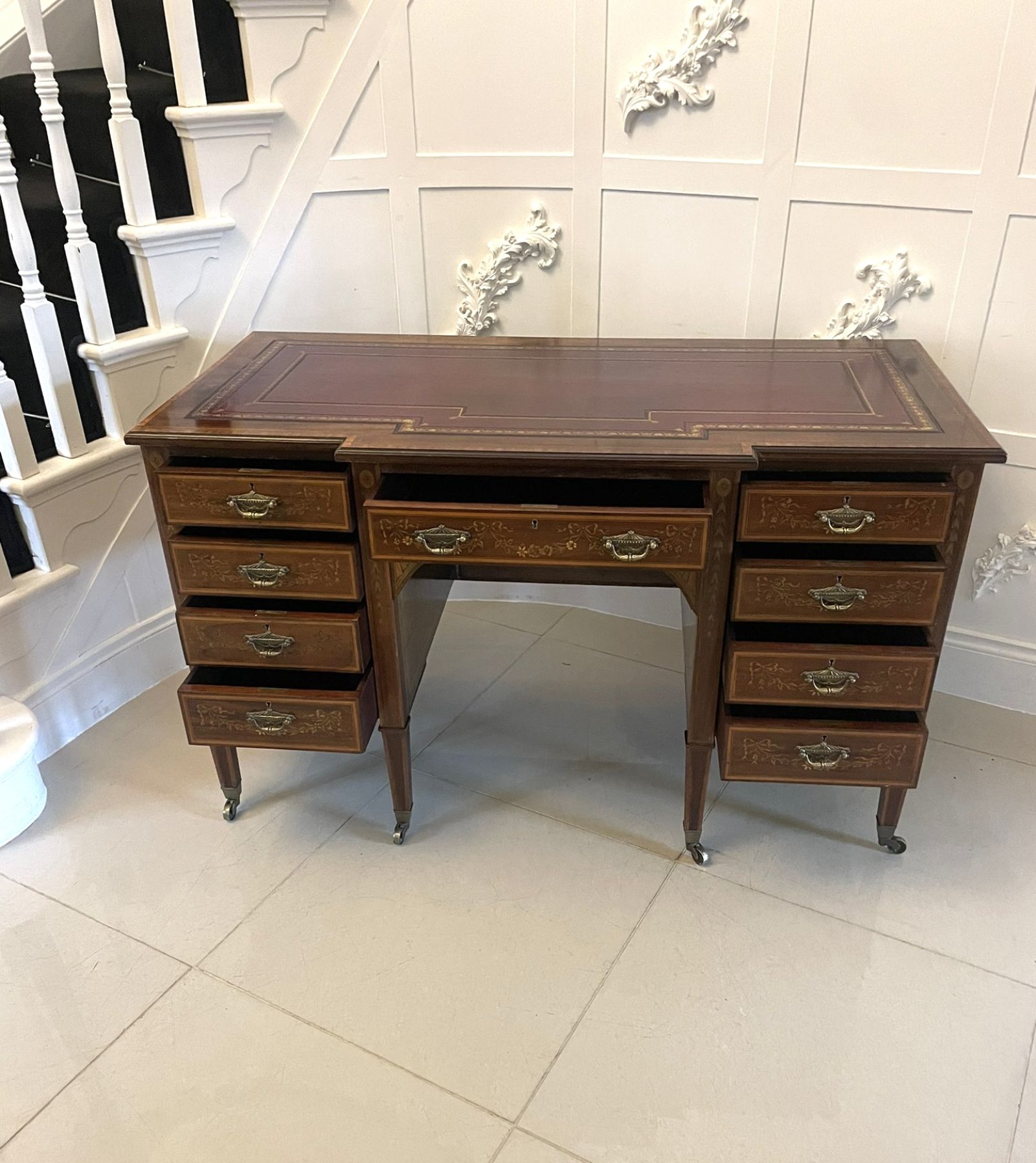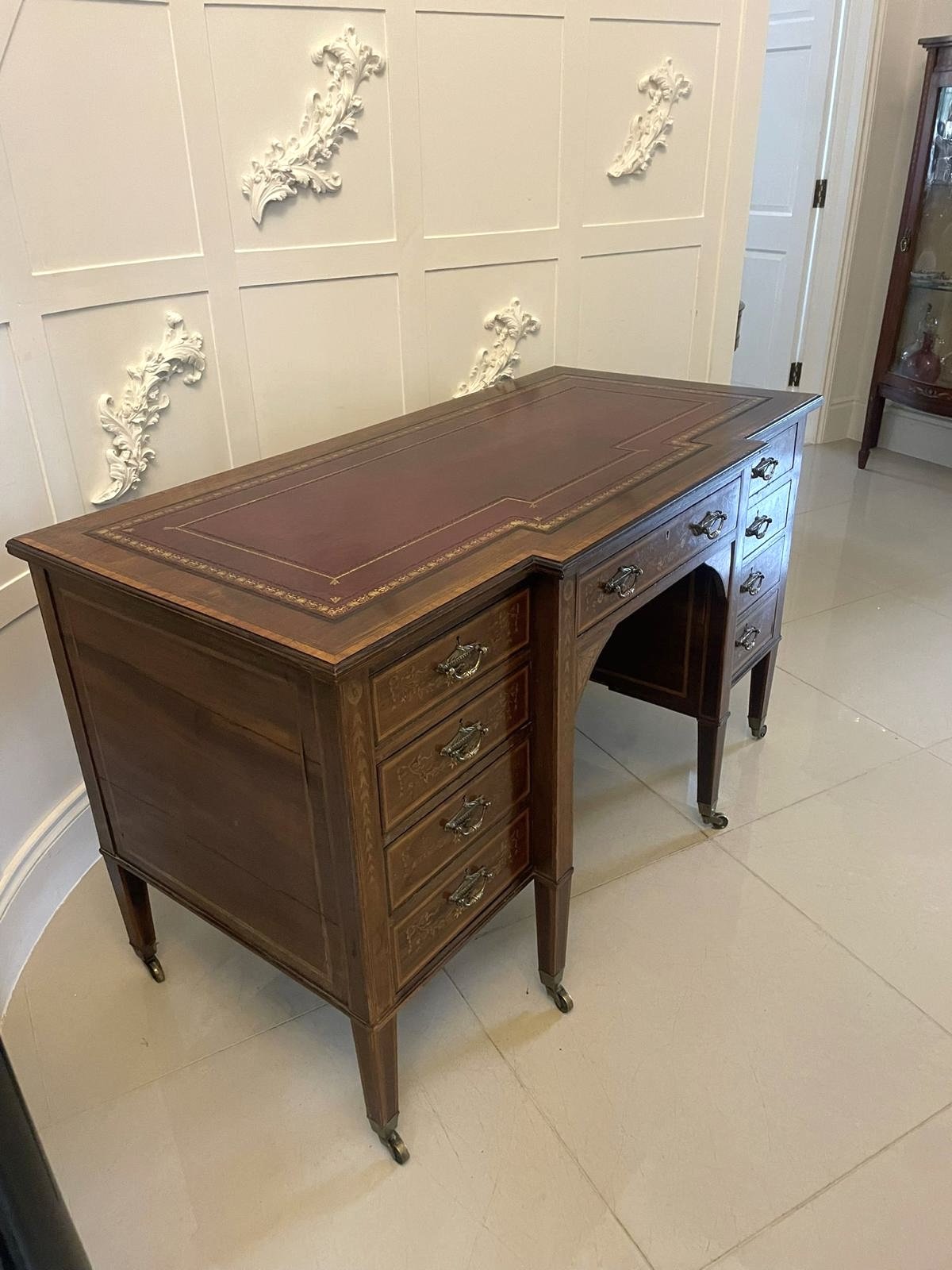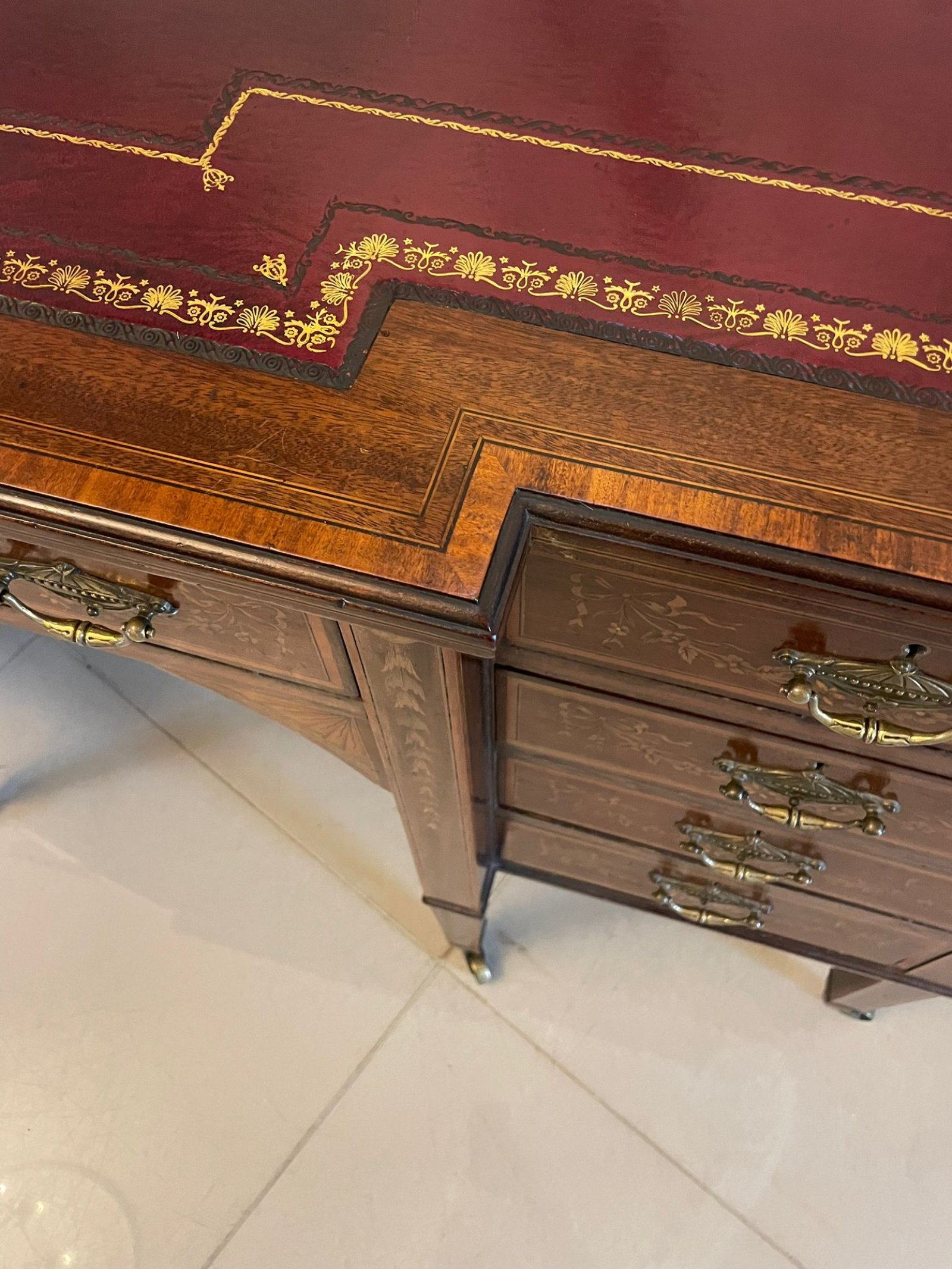 Outstanding Quality Antique Victorian Mahogany Inlaid Kneehole Desk by Edwards and Roberts