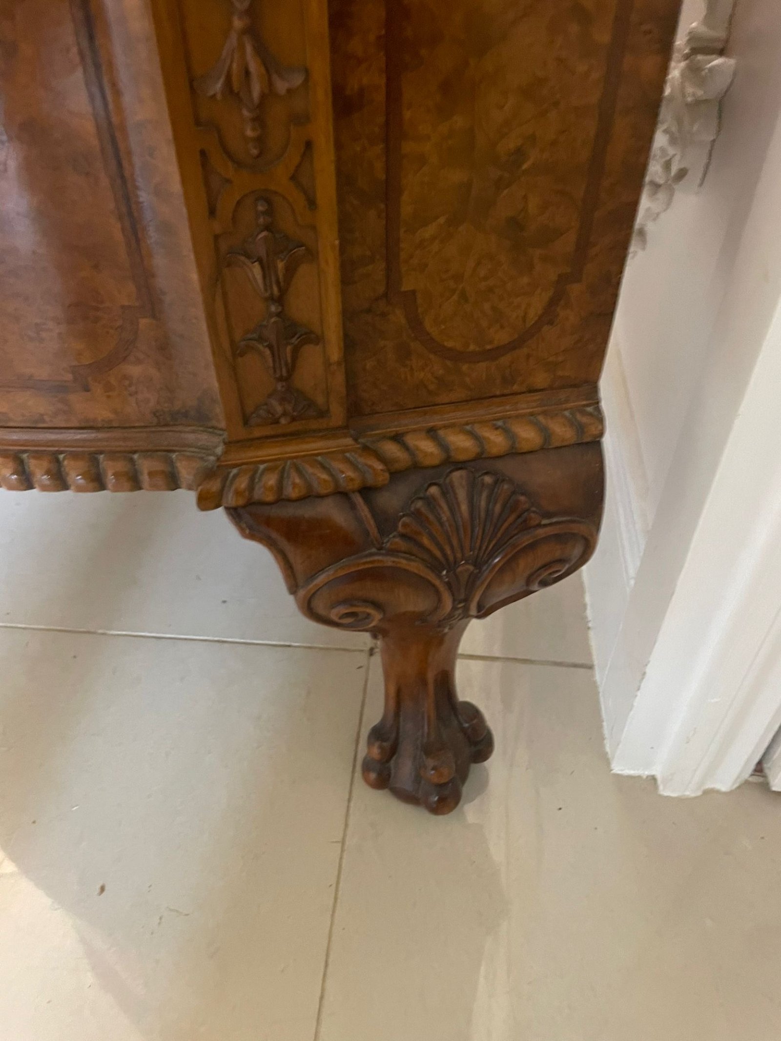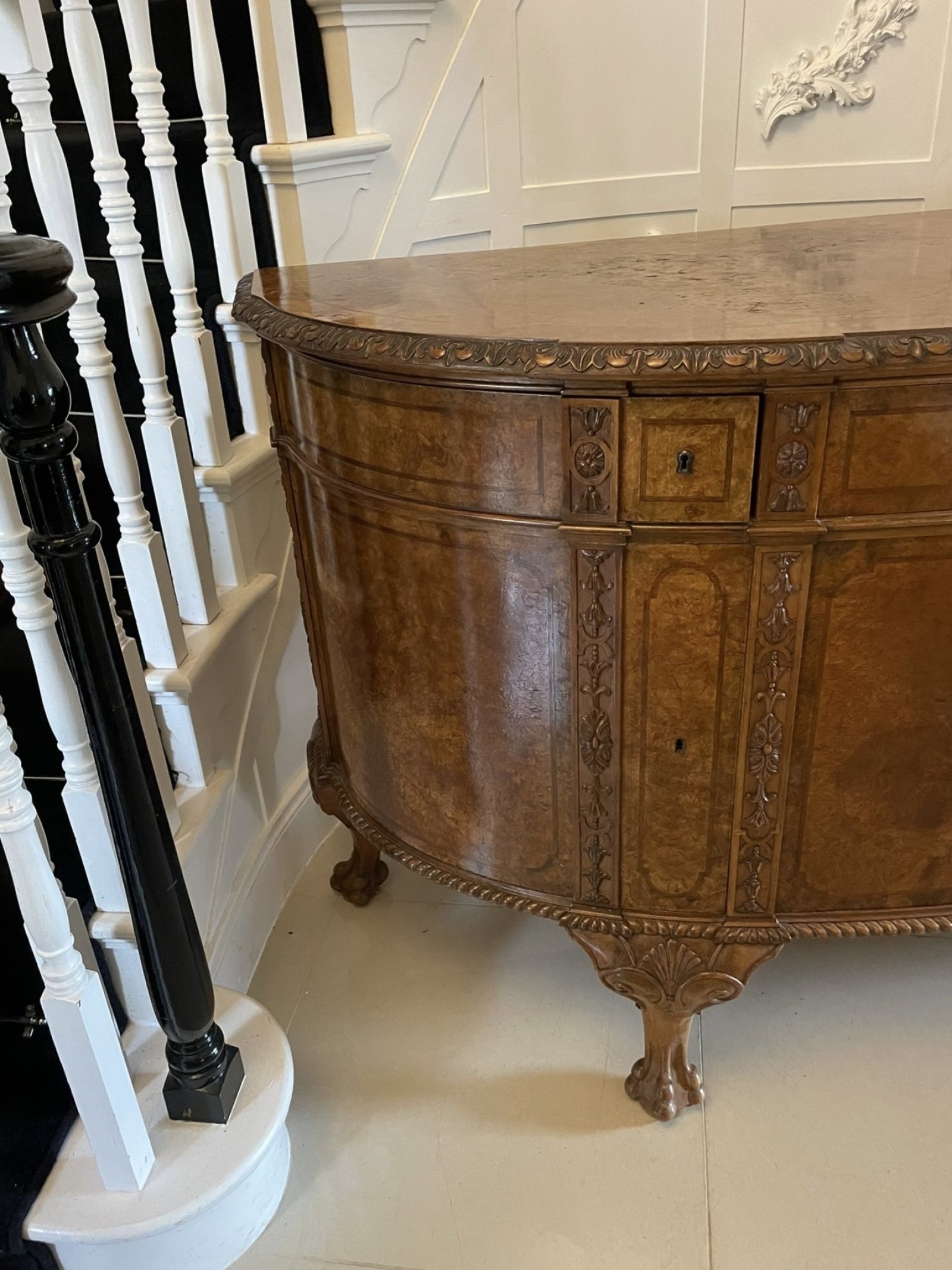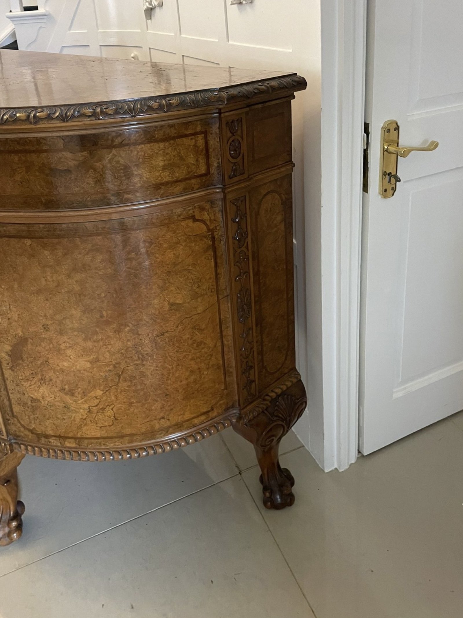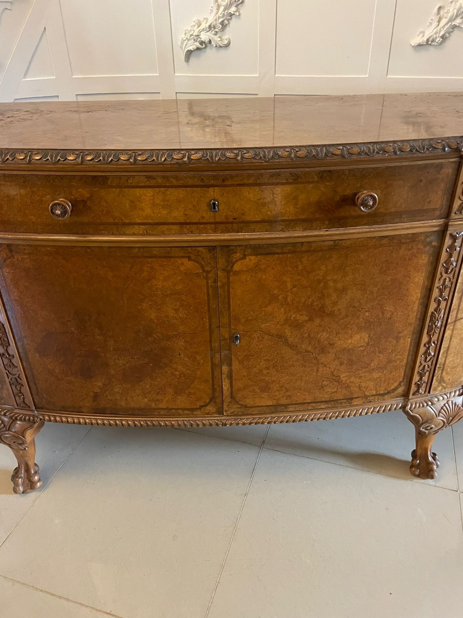Outstanding Quality Large Antique Carved Burr Walnut Bow Fronted Sideboard