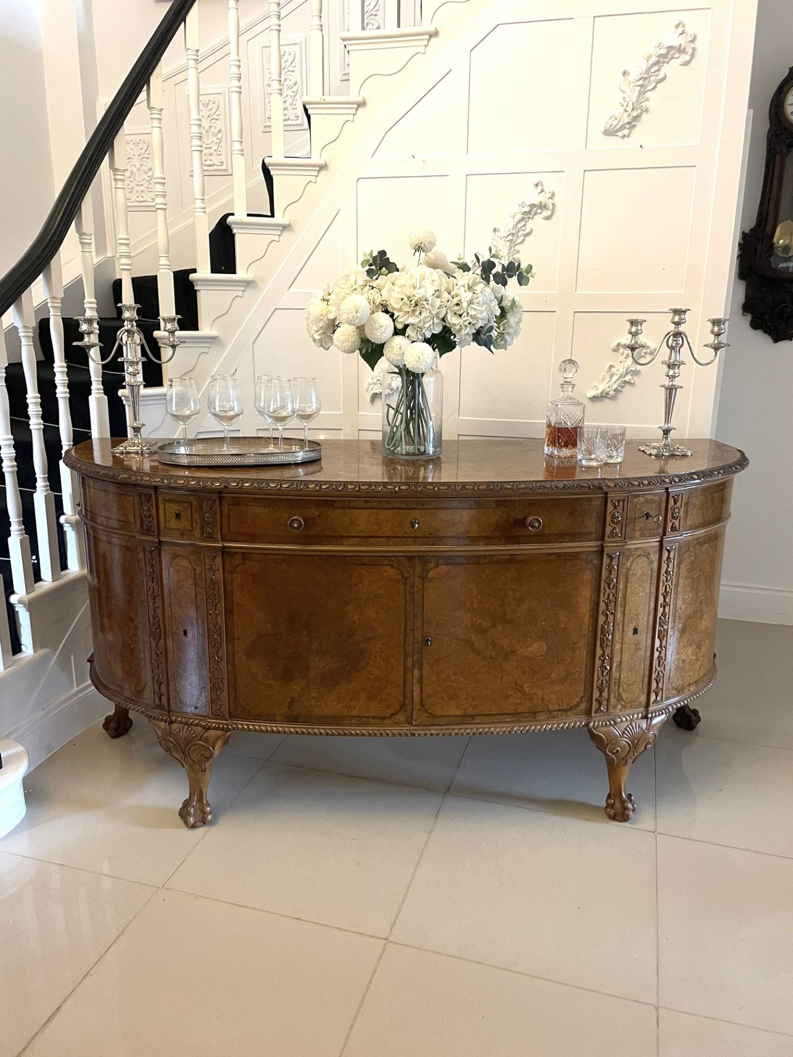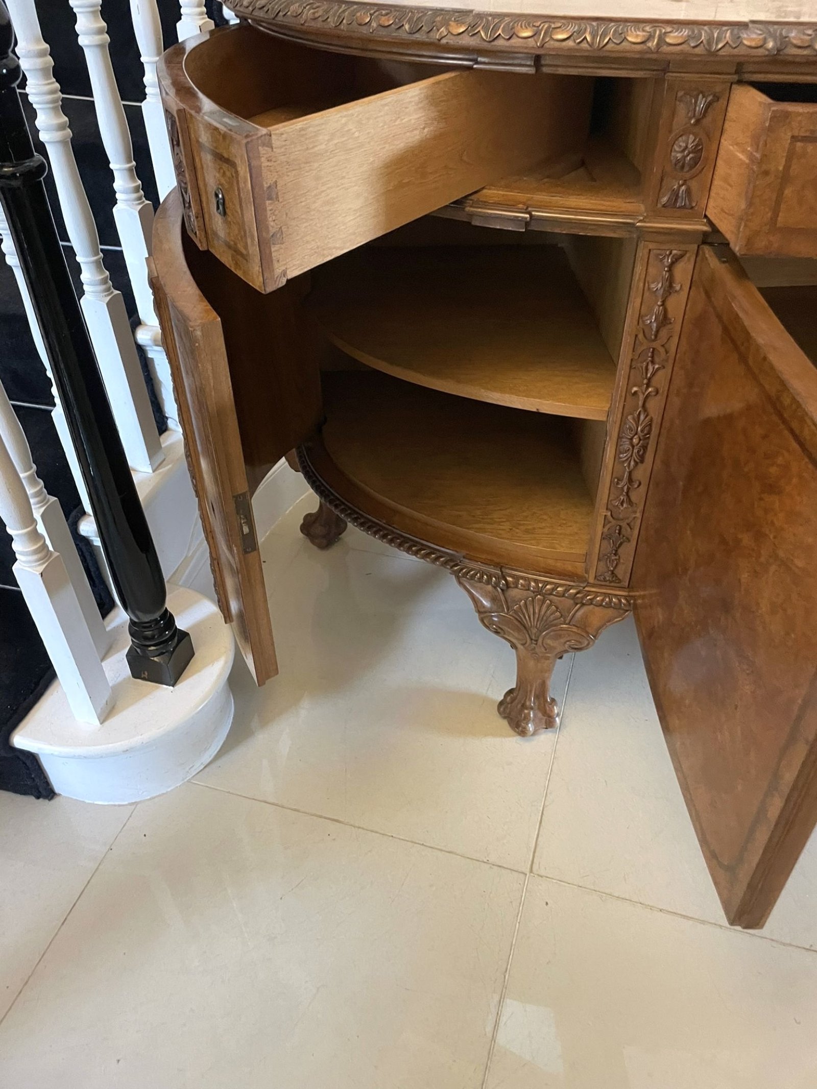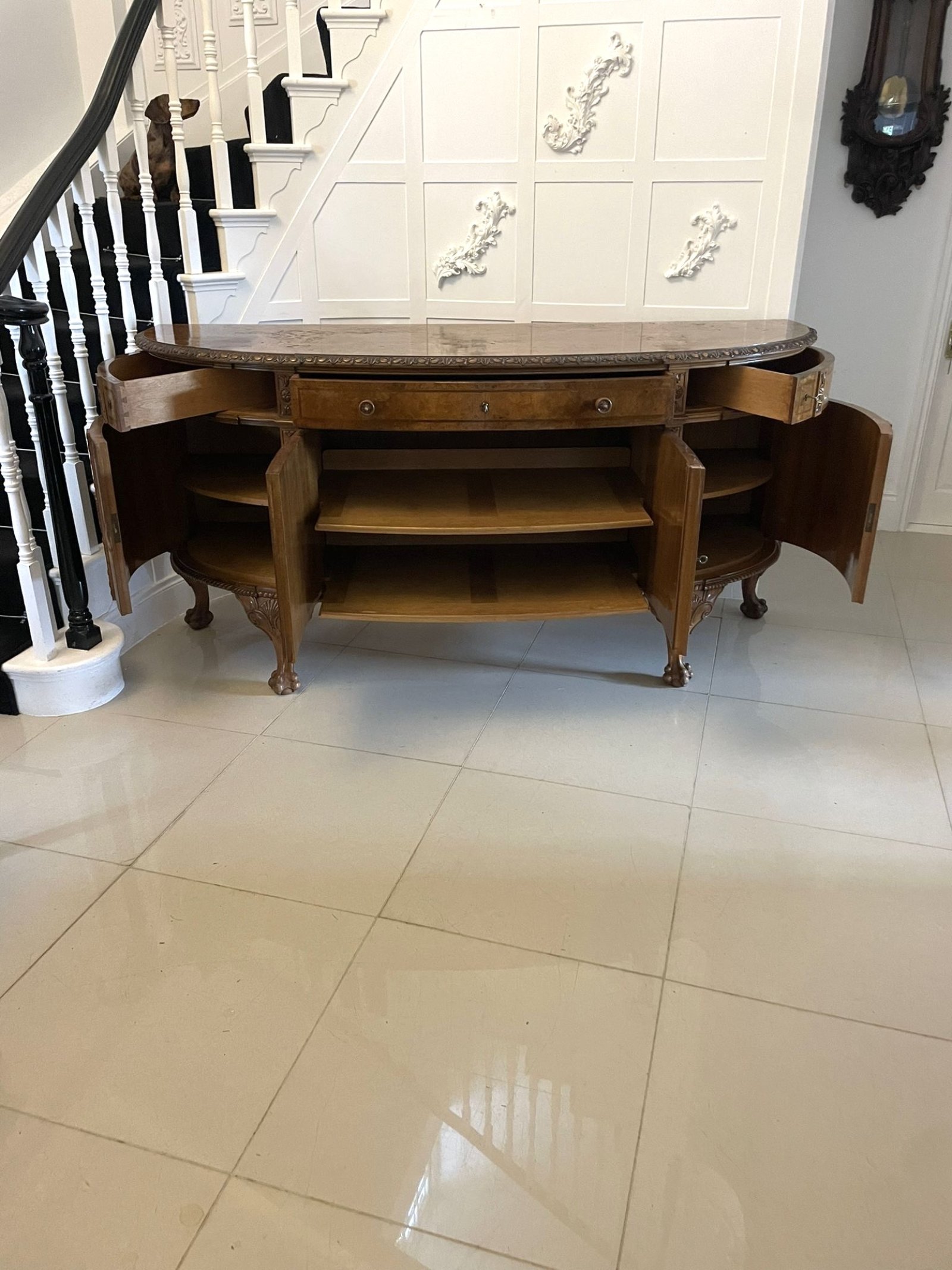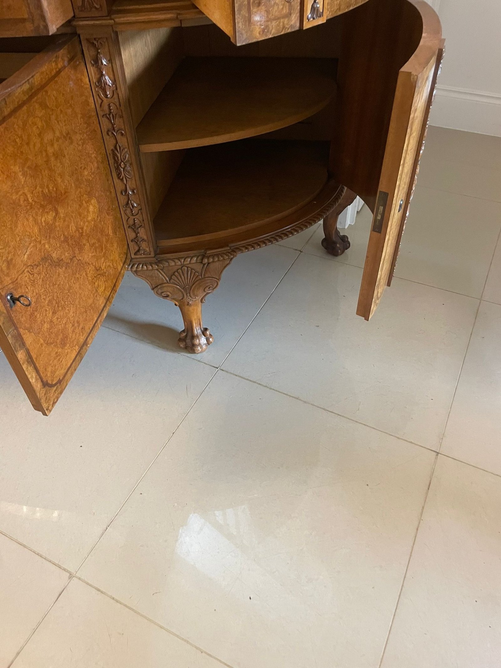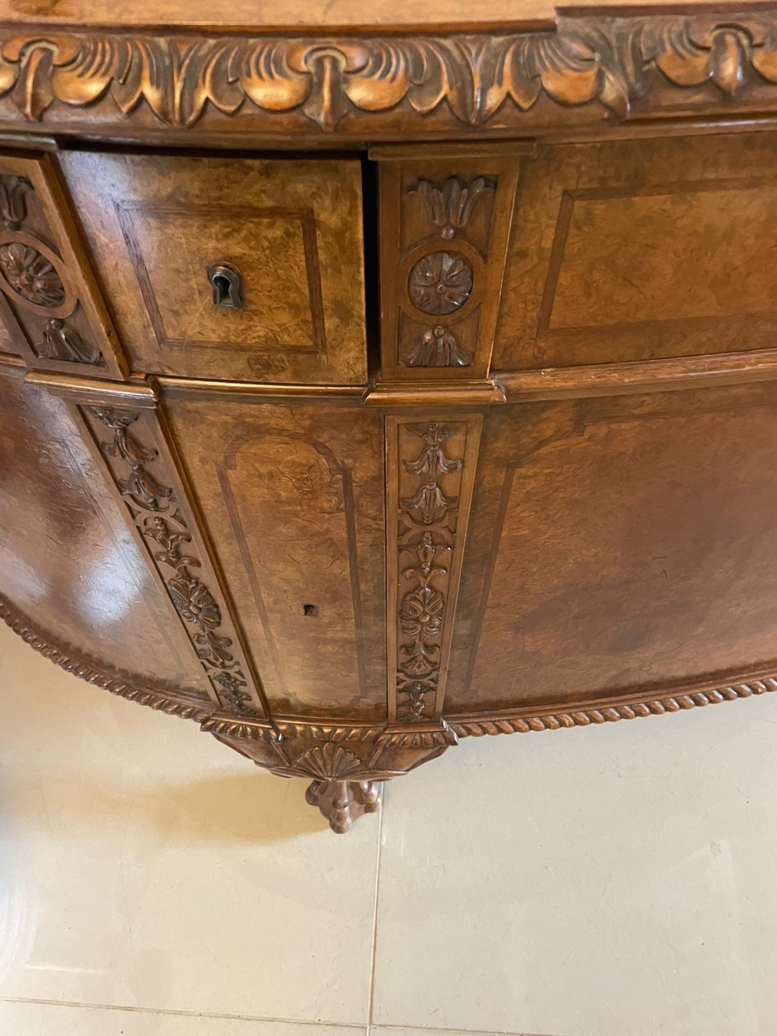 Outstanding Quality Large Antique Carved Burr Walnut Bow Fronted Sideboard