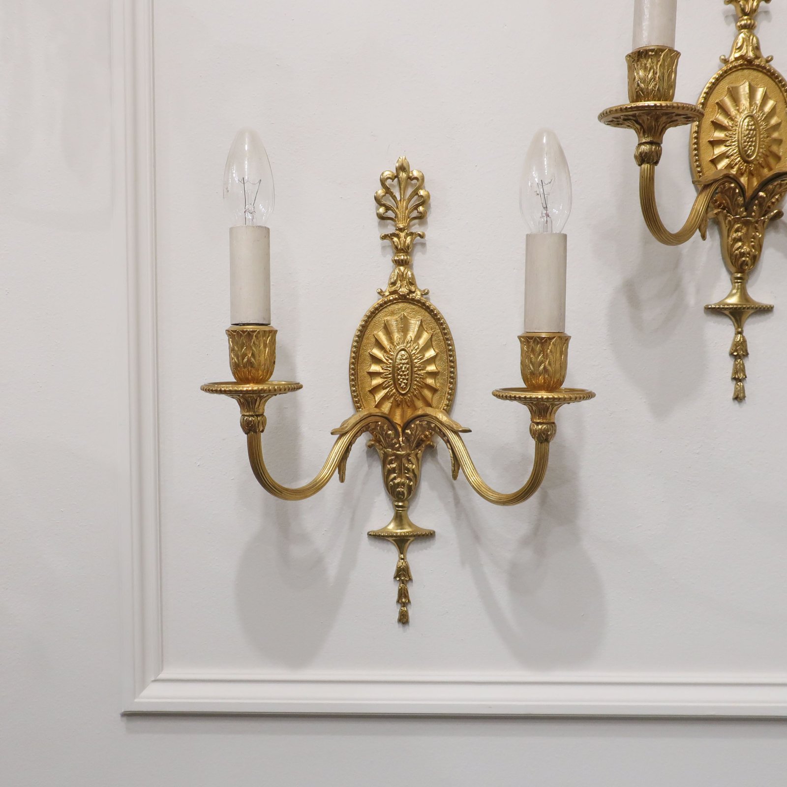 Pair of Adam Style Gilt Bronze Wall Lights