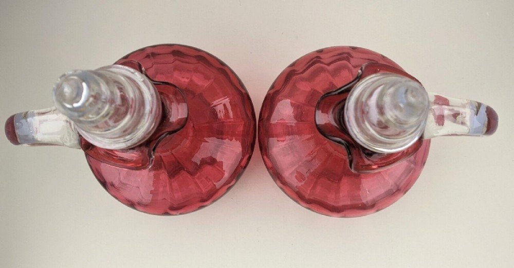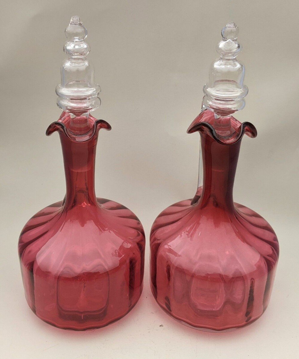 Pair Of Antique Cranberry Glass Decanters