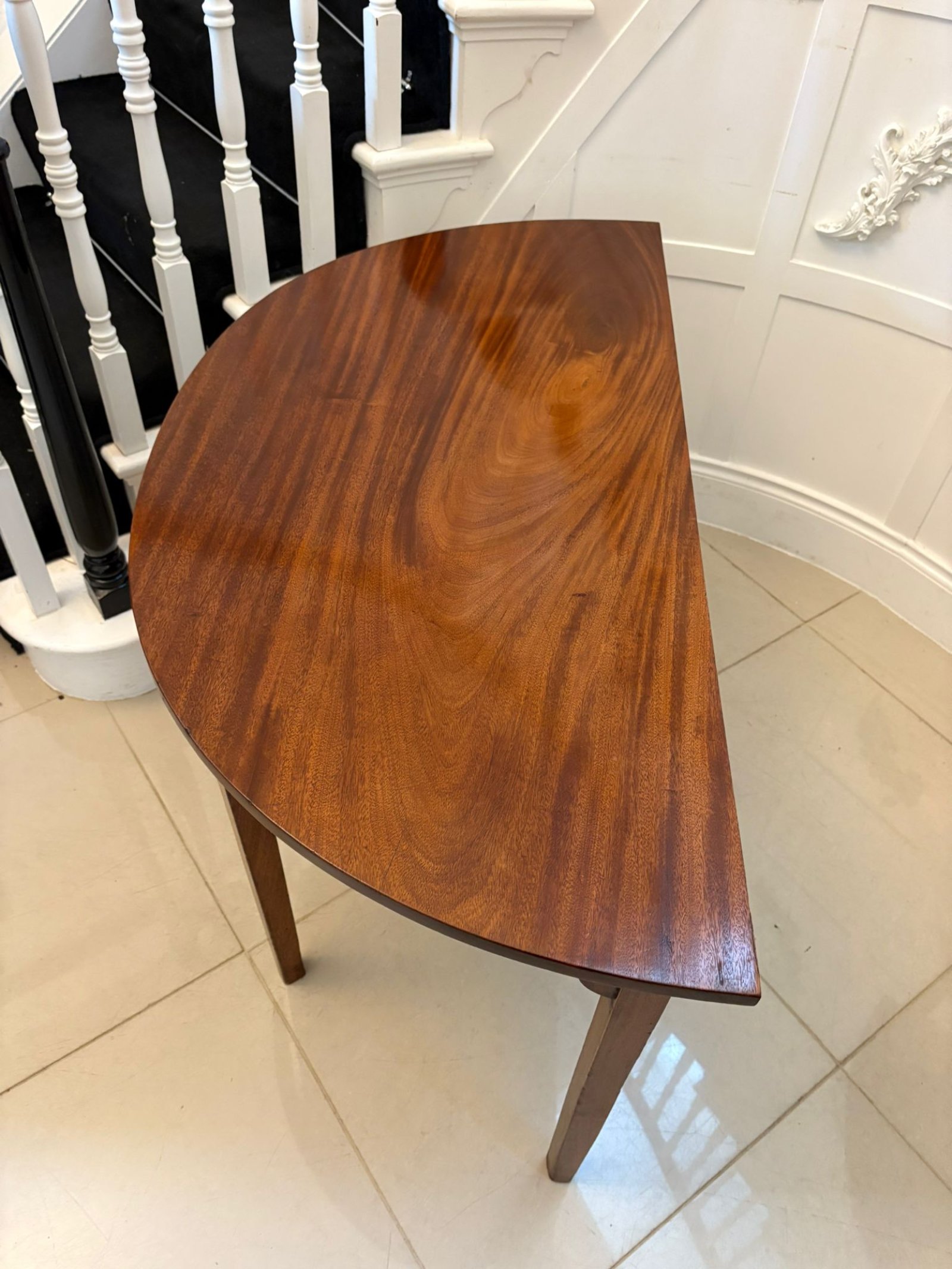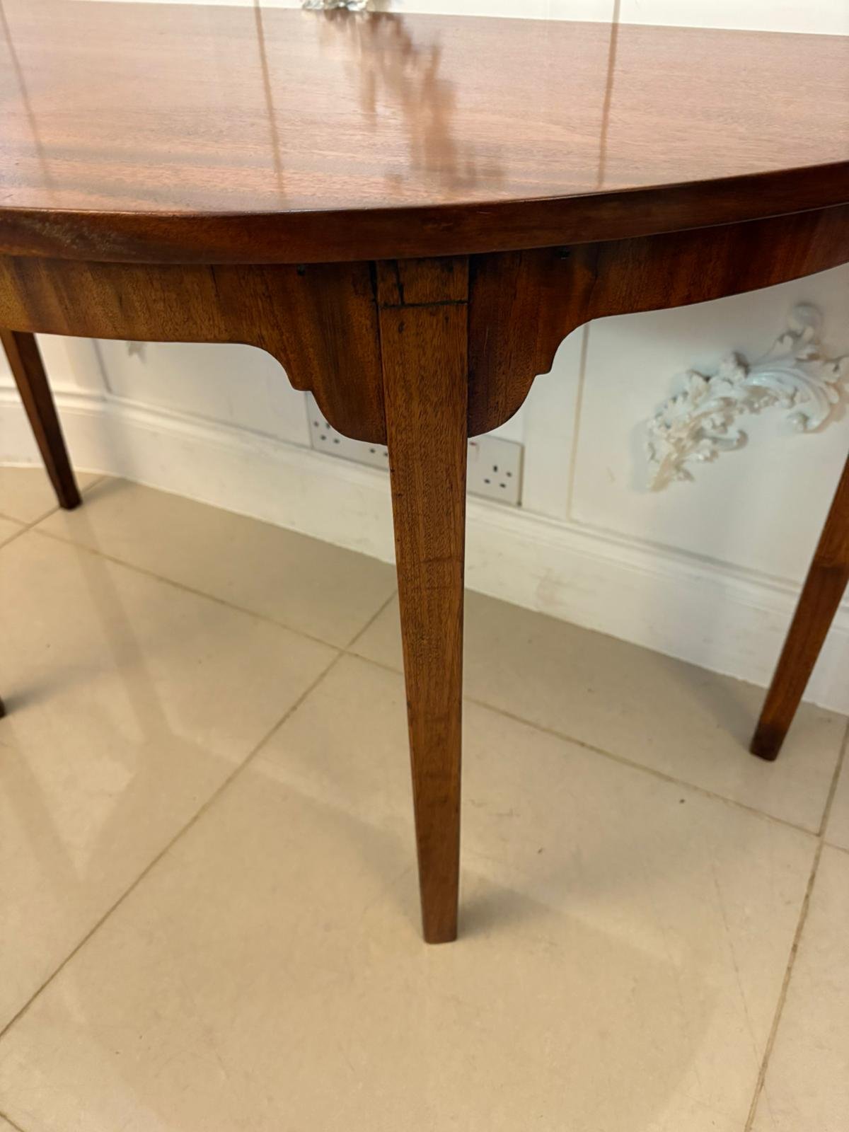 Pair of Antique George III Quality Figured Mahogany Shaped Demi Lune Console Tables