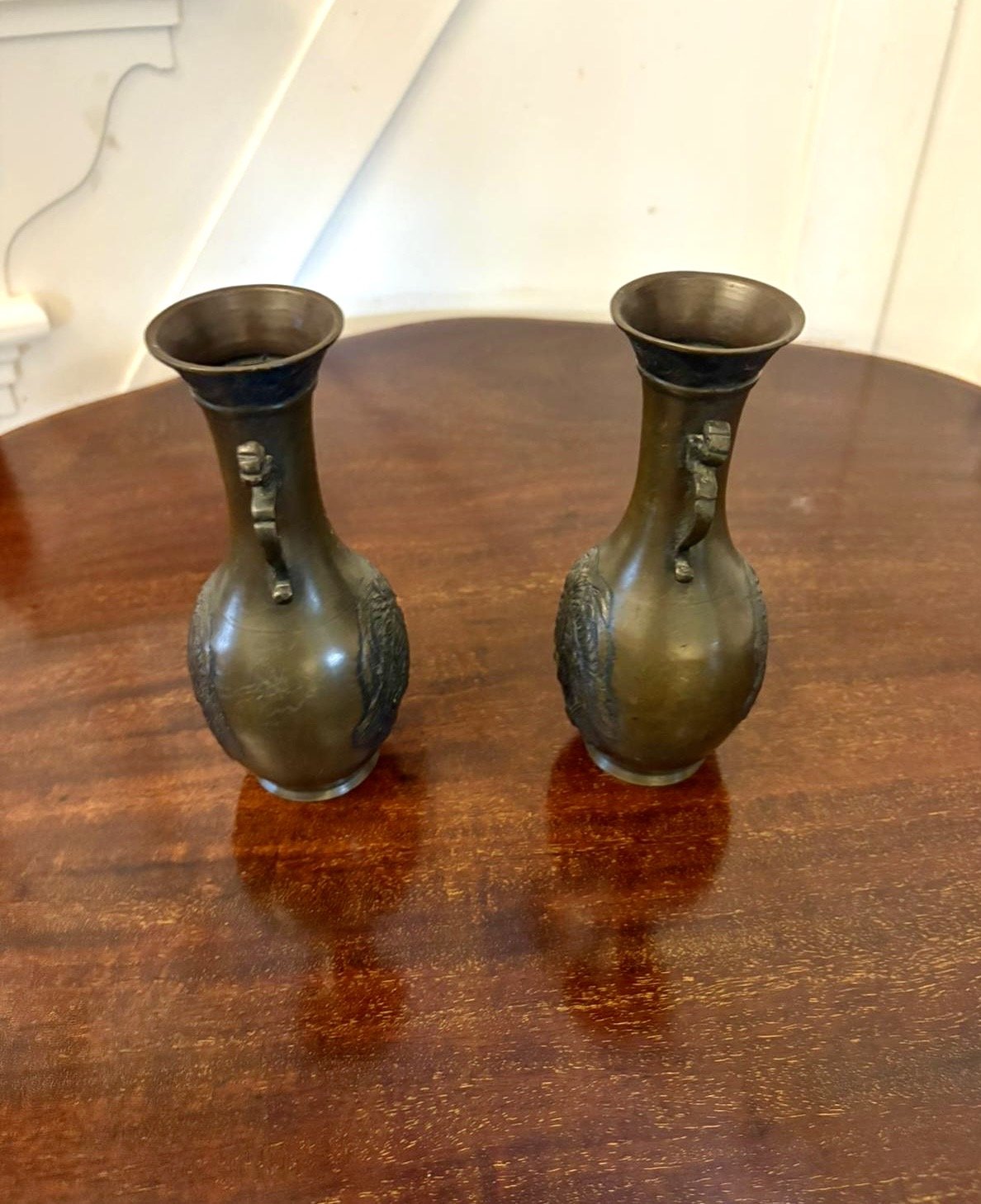 Pair of Antique Japanese Quality Meiji Bronze Vases