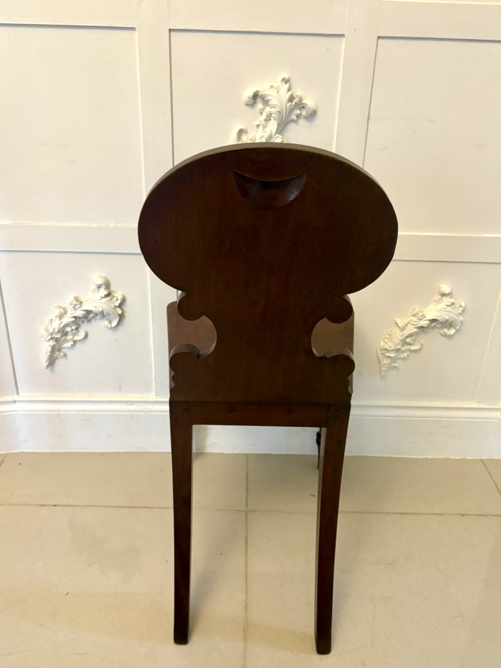 Pair of Antique Regency Quality Carved Figured Mahogany Hall Chairs