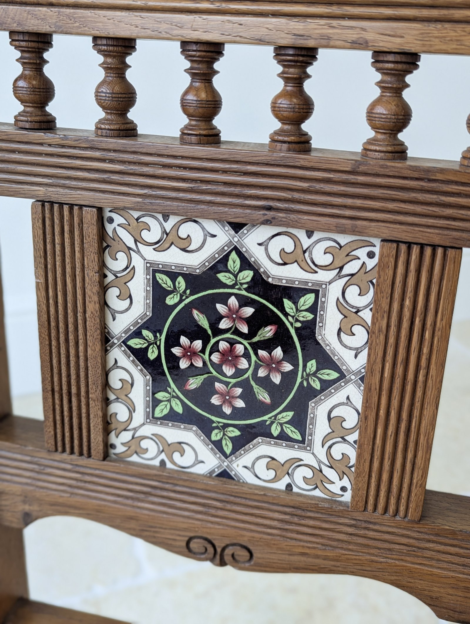 Pair of Antique Victorian Oak Side Chairs with Ceramic Tile Backs c.1890