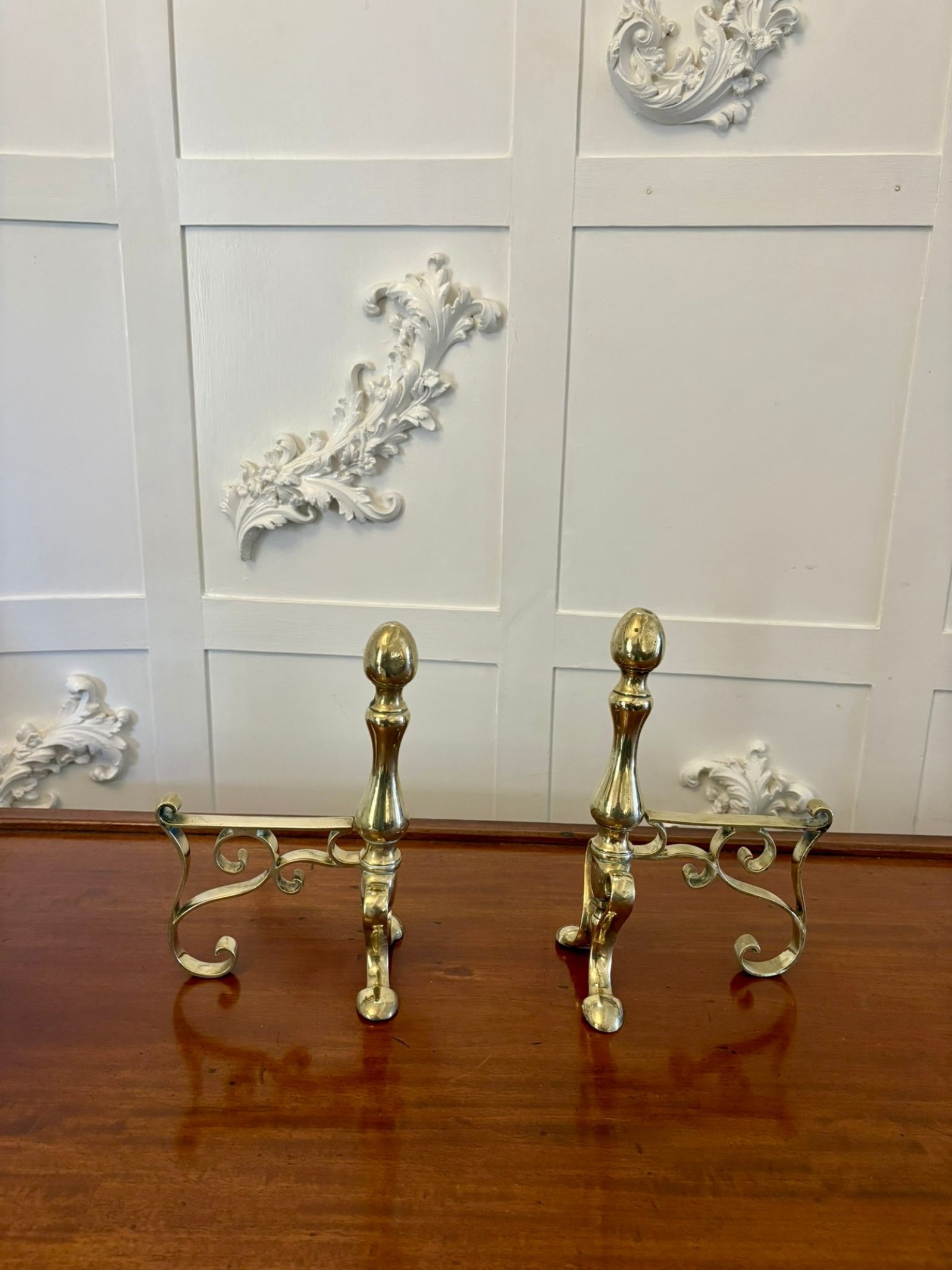 Pair of Antique Victorian Quality Brass Fire Dogs