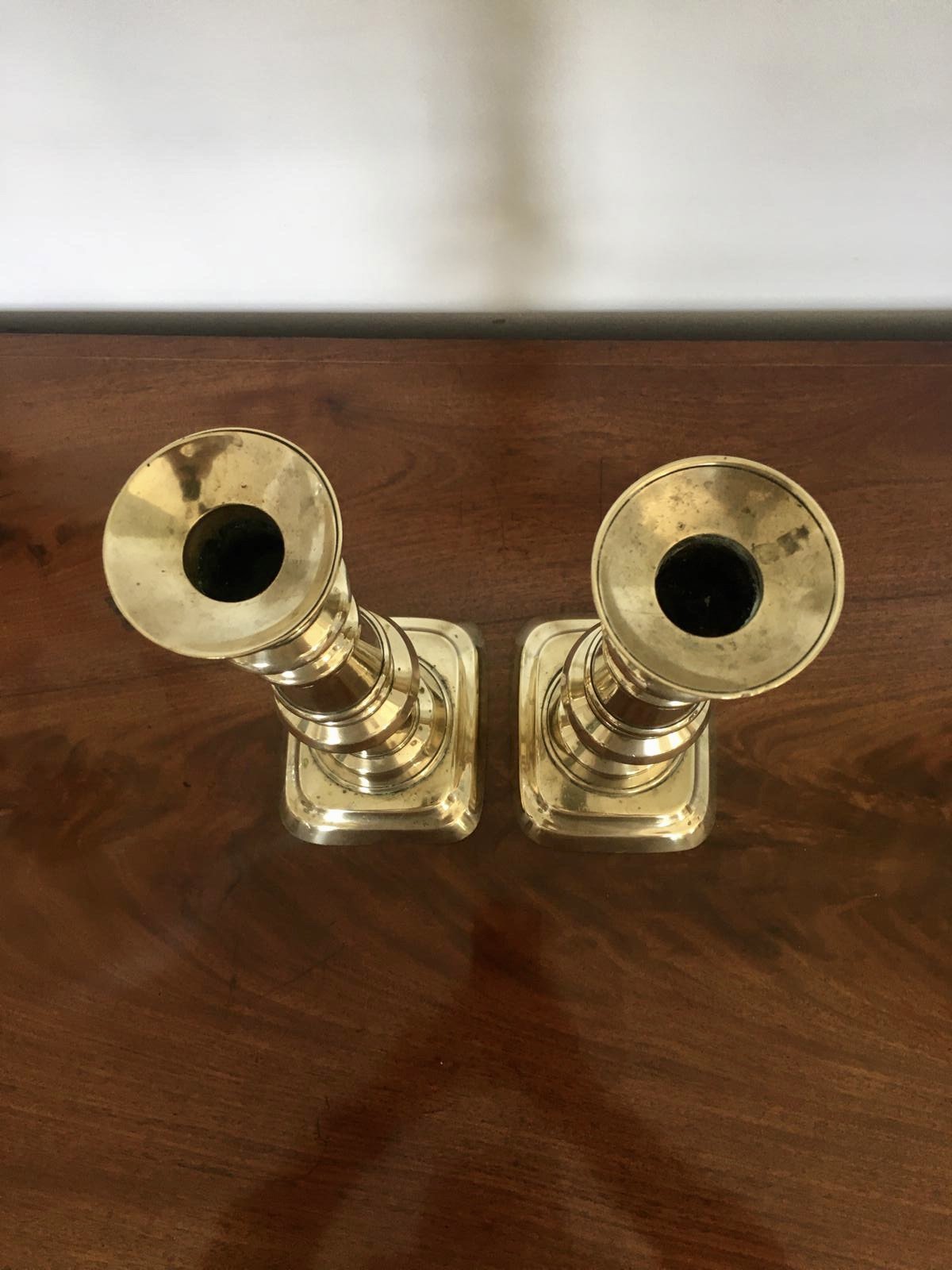 Pair of Extra Tall Antique Brass Candlesticks