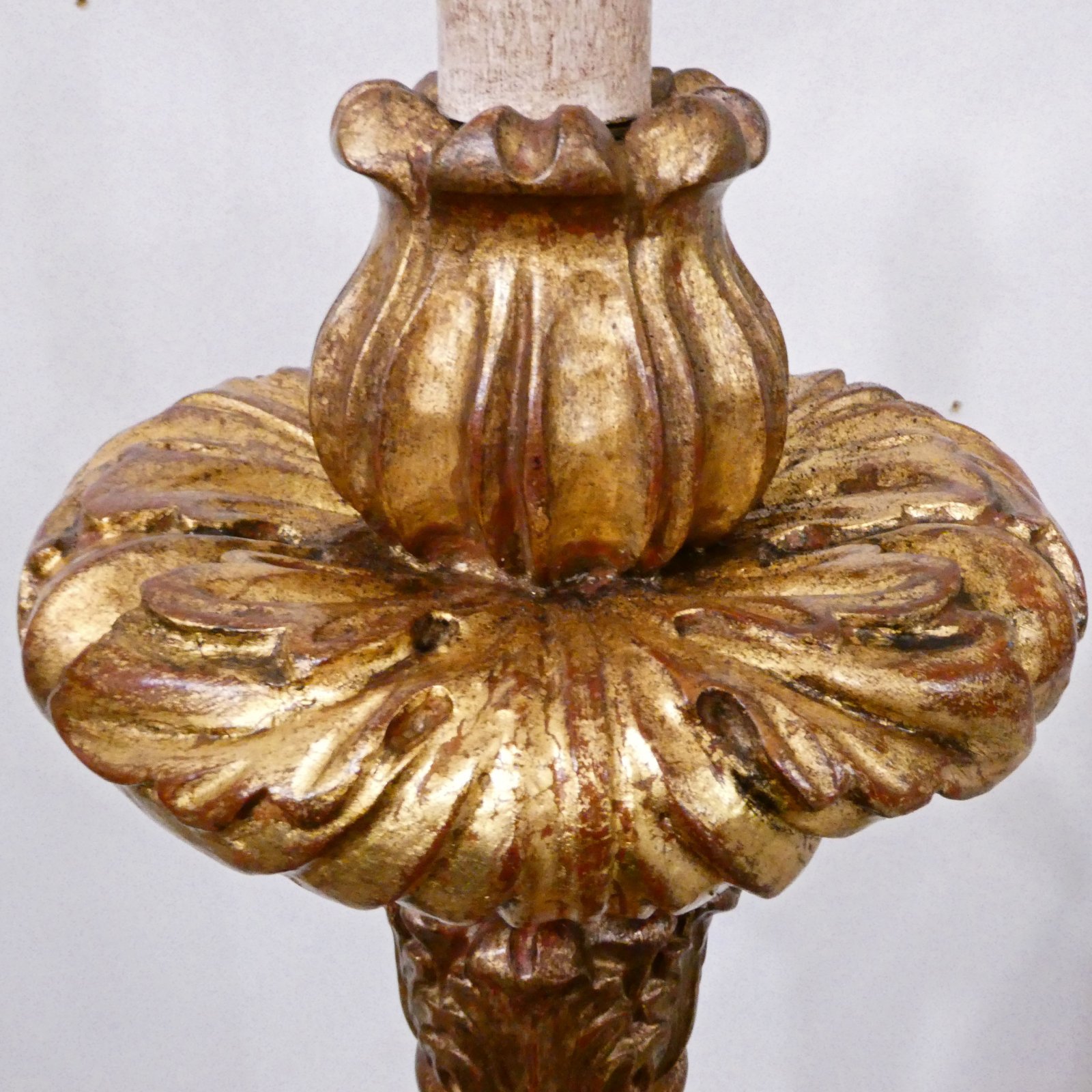 Pair of Italian Baroque Style Giltwood Floor Lamps