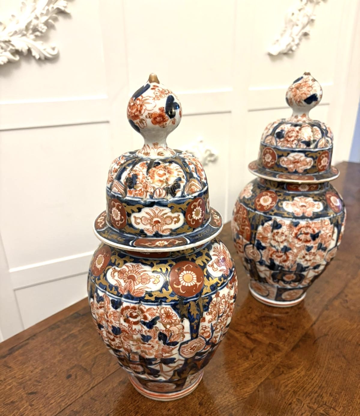 Pair of Quality Antique Japanese Imari Lidded Vases
