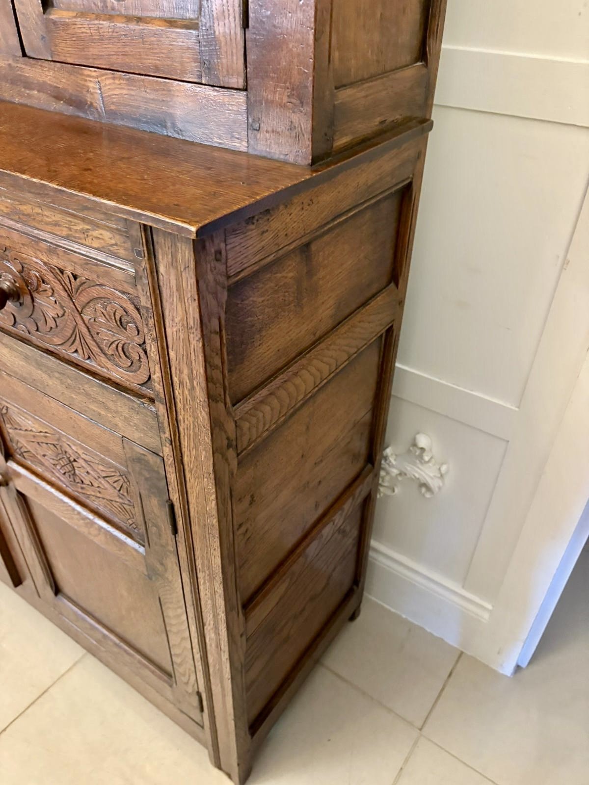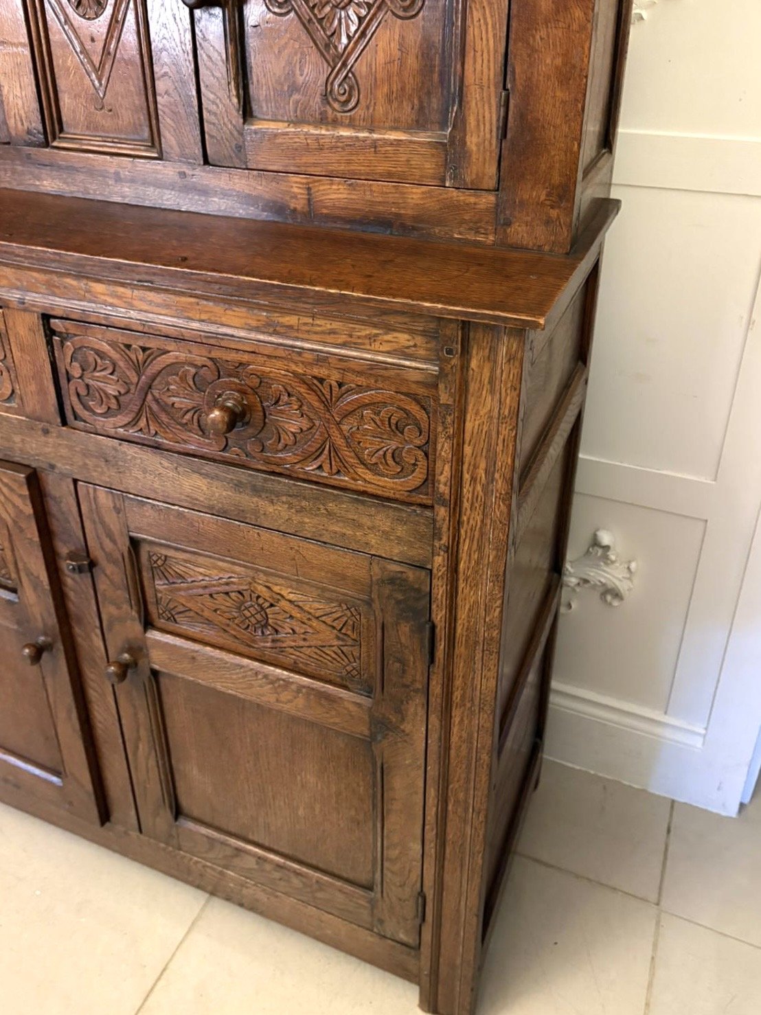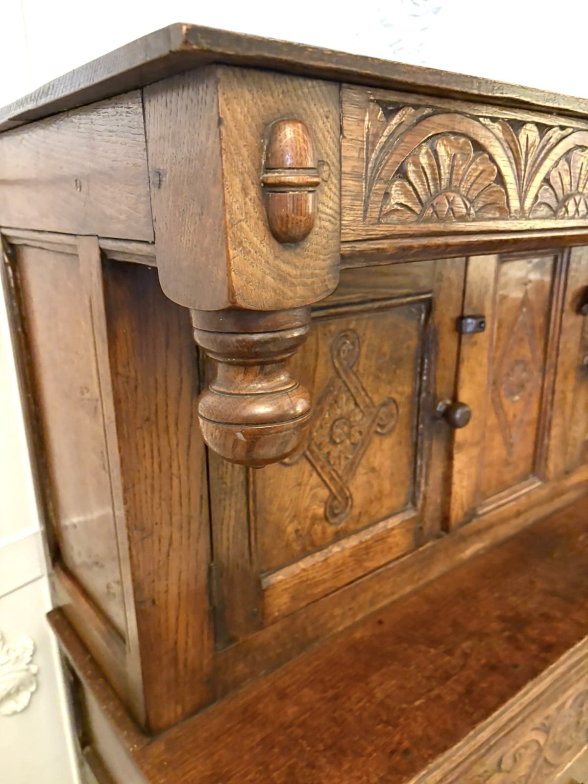 Quality Antique Carved Oak Court Cupboard with Ipswich Carving