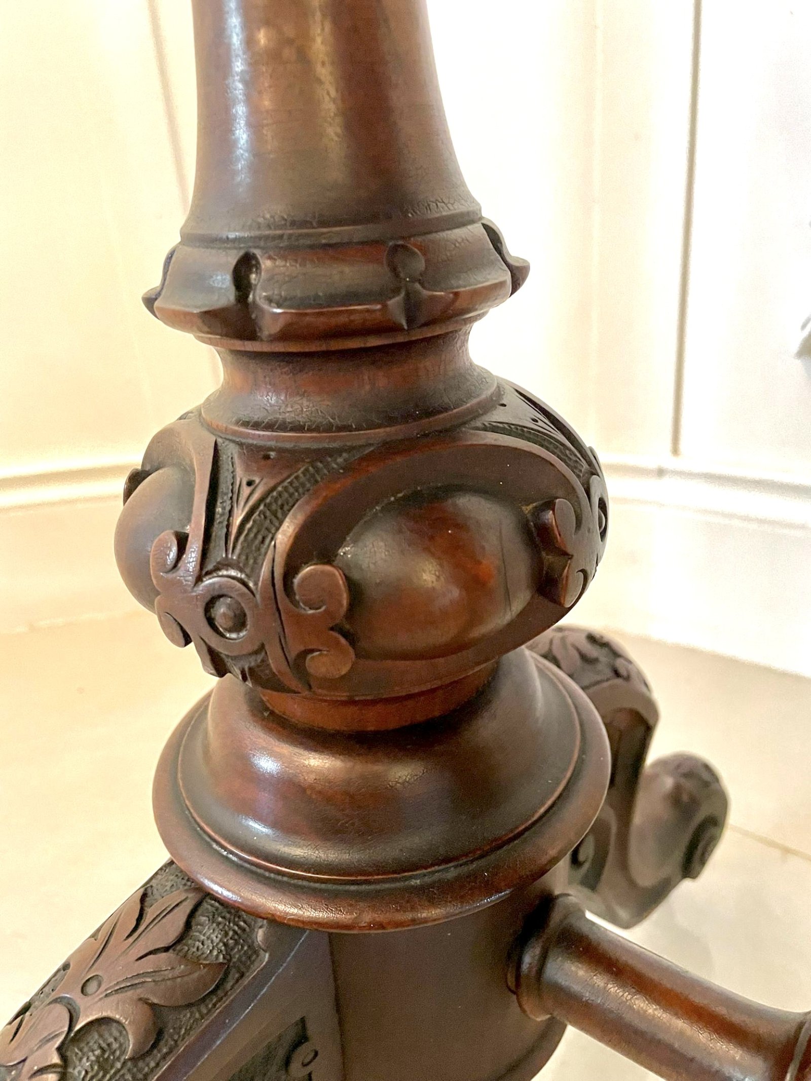 Quality antique Victorian burr walnut card/side table having a quality burr walnut top with a thumb moulded edge opening to reveal a baize interior. It is supported on shaped turned carved columns standing on shaped carved solid walnut cabriole legs with scroll feet and original castors united by a turned carved stretcher.