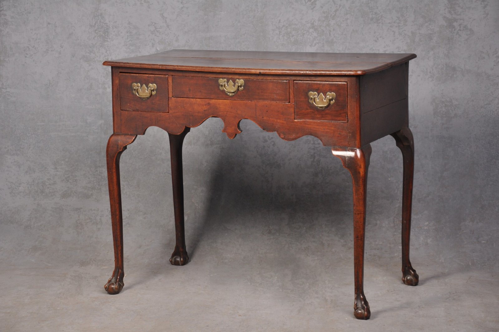 A rare 18th Century George II Cherrywood Lowboy of the most glorious rich warm colour and patina, in excellent original condition. The handles are original as are the cherrywood drawer linings with the exception of the middle drawer bottom, which has been replaced many years ago in Oak. The elegant cabriole legs have a wonderful claw and ball foot carved to the base.