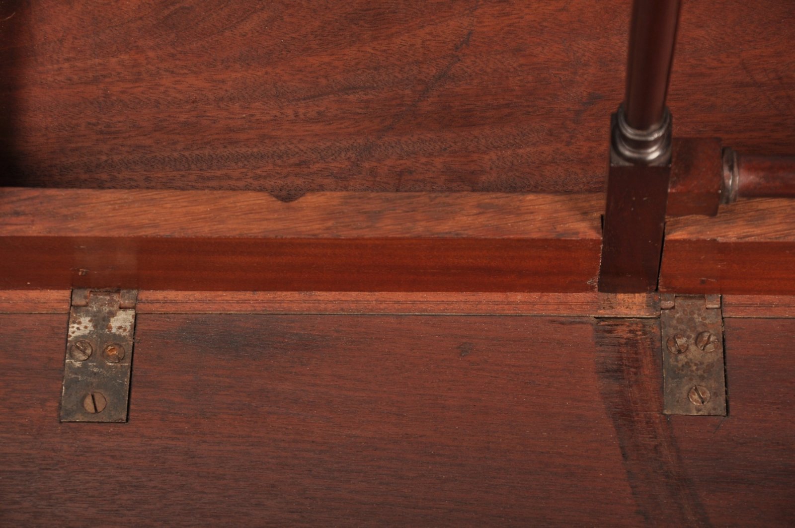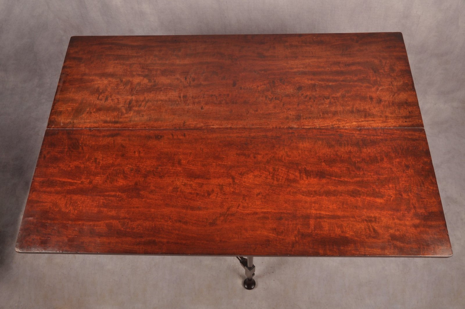 In wonderful original condition, of lovely colour with highly figured Mahogany veneer to the top. The hinges are original, there is one patched area underneath, it looks as if the maker changed his mind and decided to actually fit four hinges instead of two or three, making the top extra strong. The Table is very clean and untouched underneath.