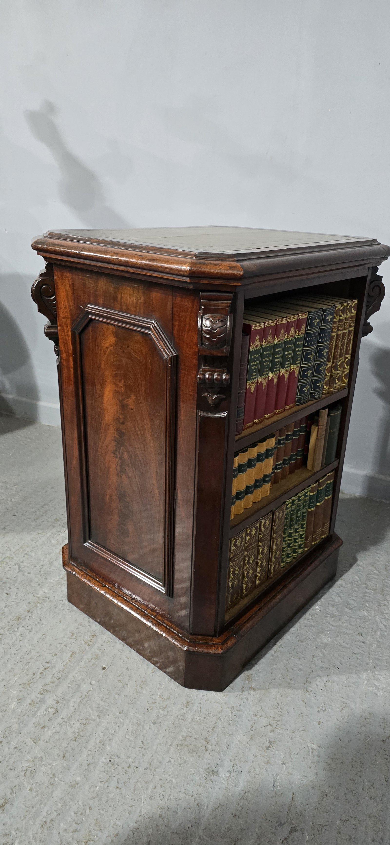 A rare Victorian mahogany open adjustable library bookcase,double sided, freestanding with bookshelves either side, in very good overall condition with green leather inlaid top.