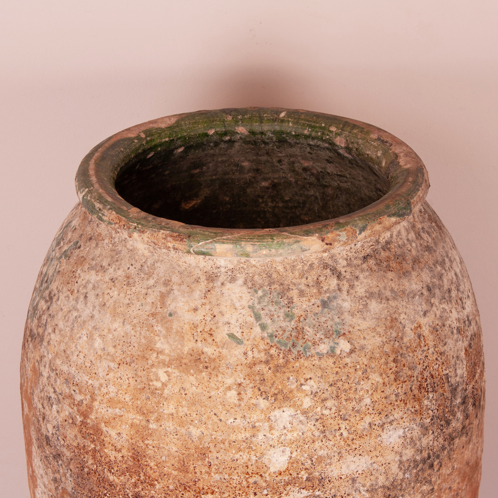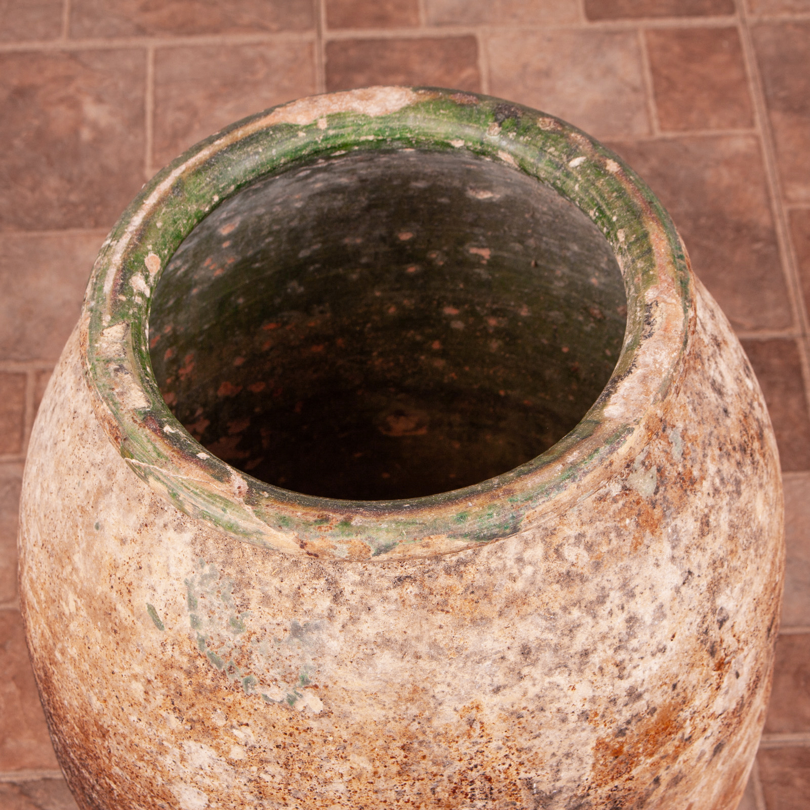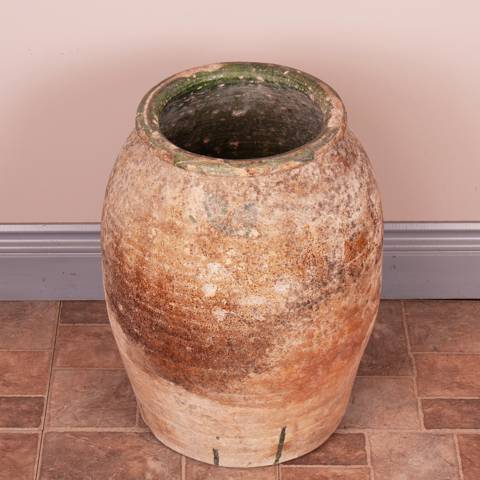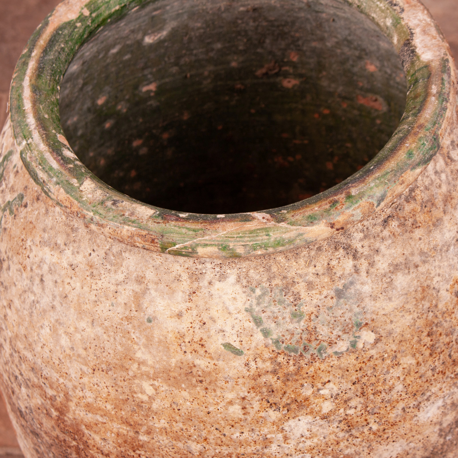The exterior is wonderfully weathered with good patination and shows the remnants of the green glaze further adding decorative value.