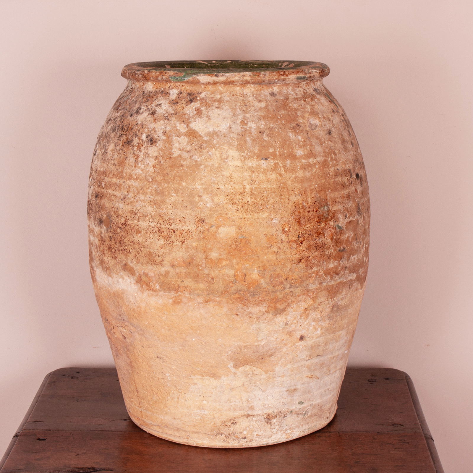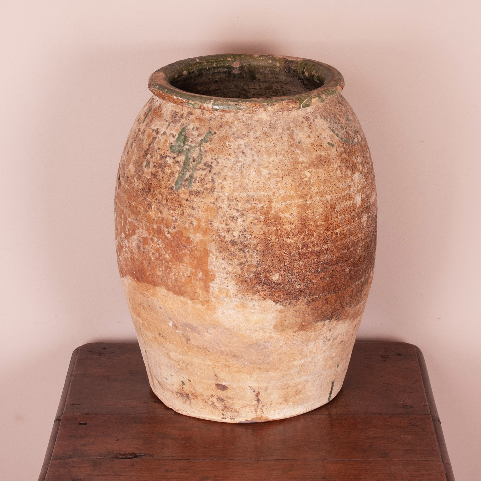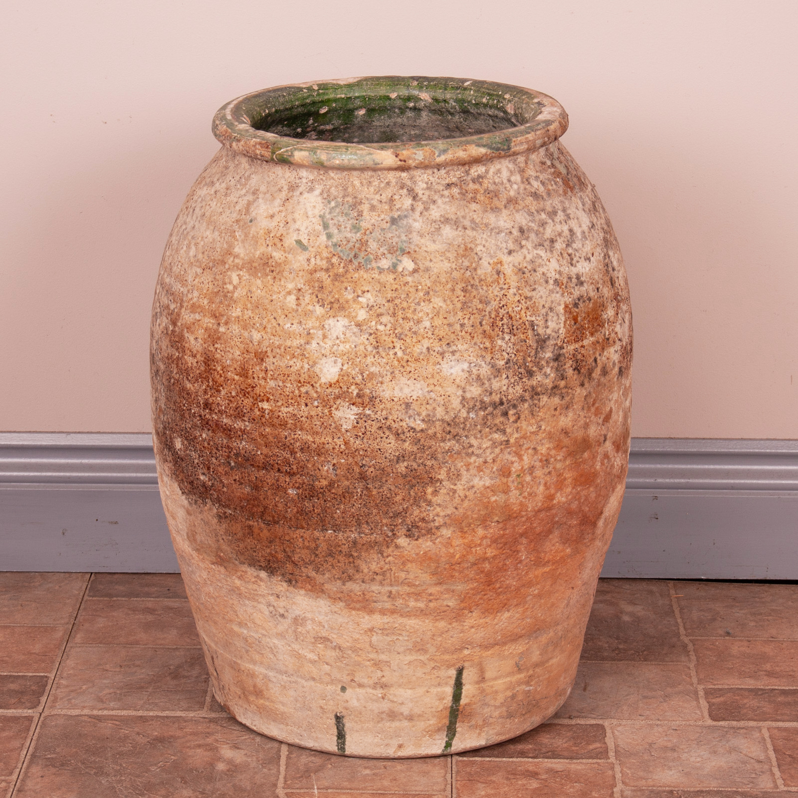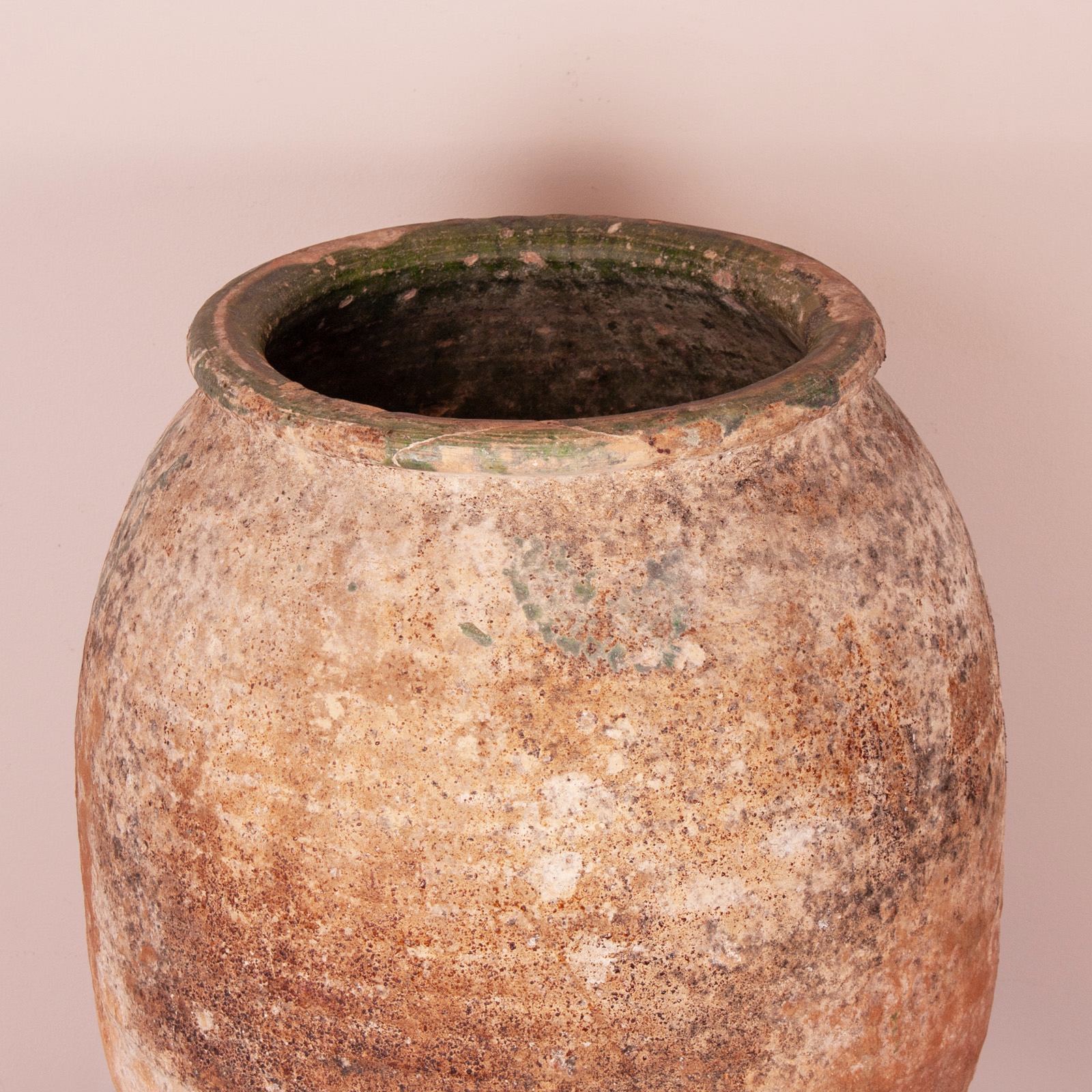 The exterior is wonderfully weathered with good patination and shows the remnants of the green glaze further adding decorative value.