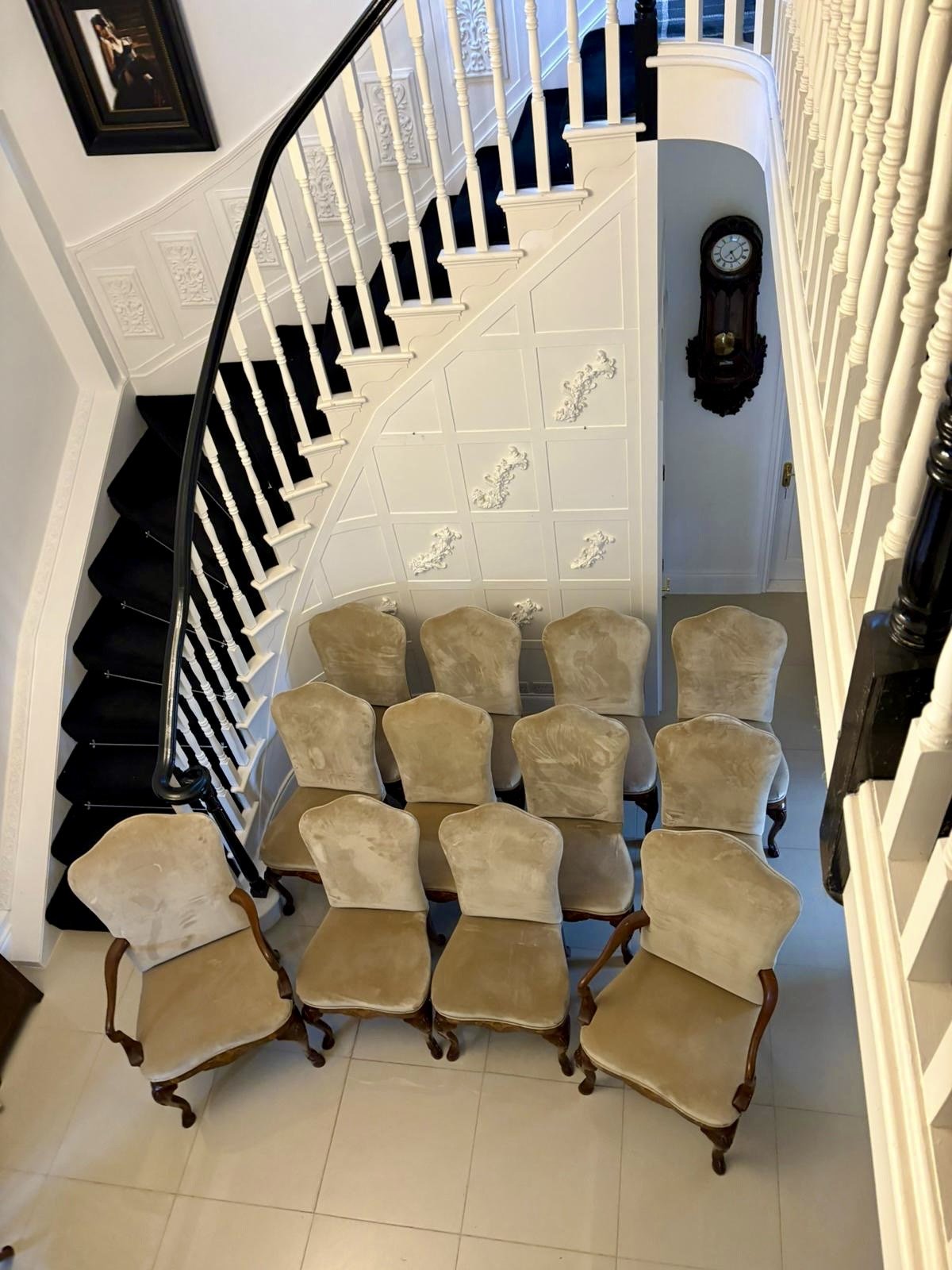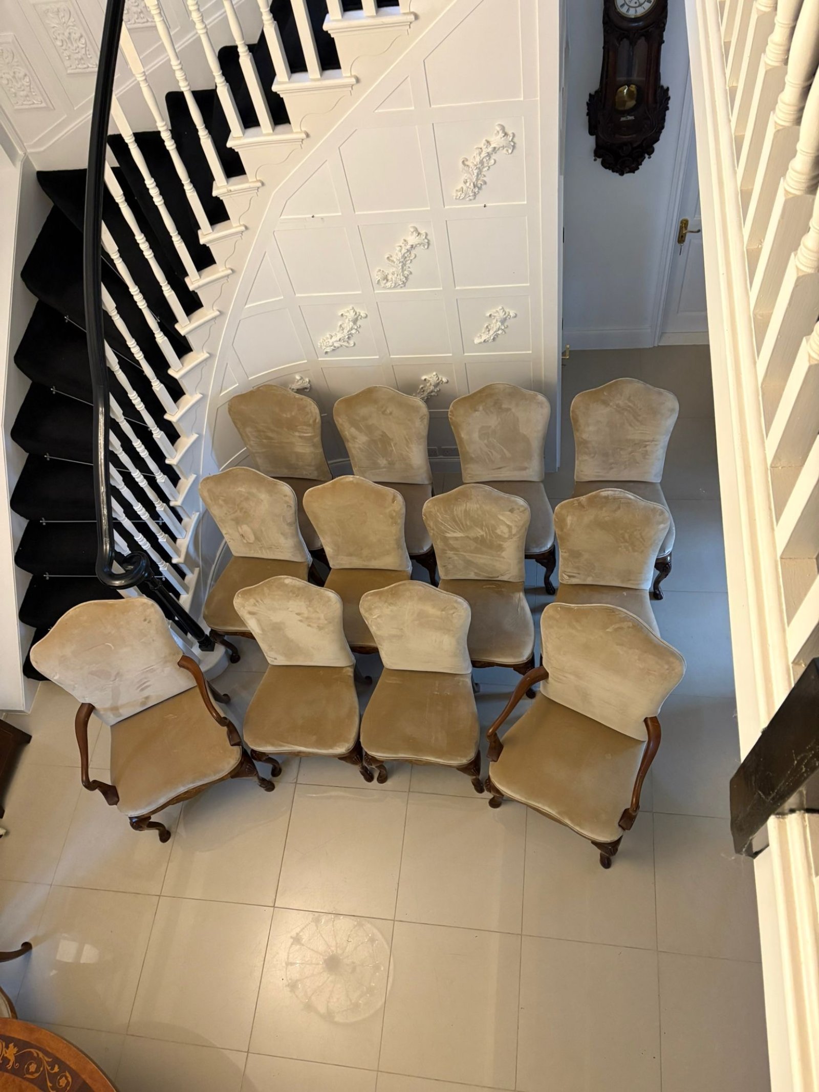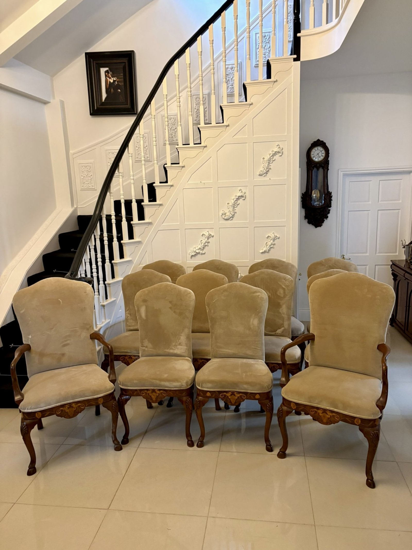 Set of 12 Antique Quality Burr Walnut Inlaid Marquetry Dining Chairs