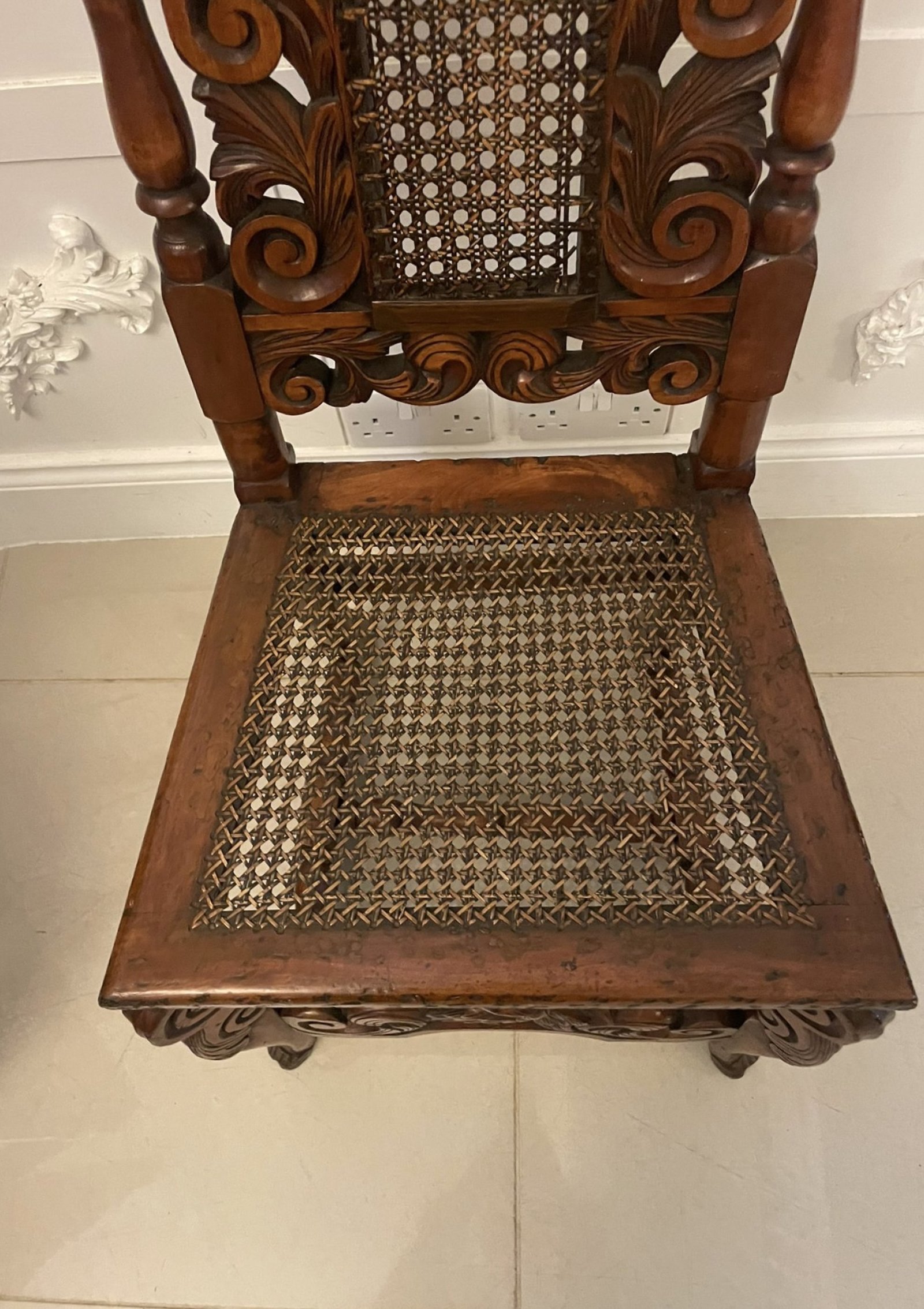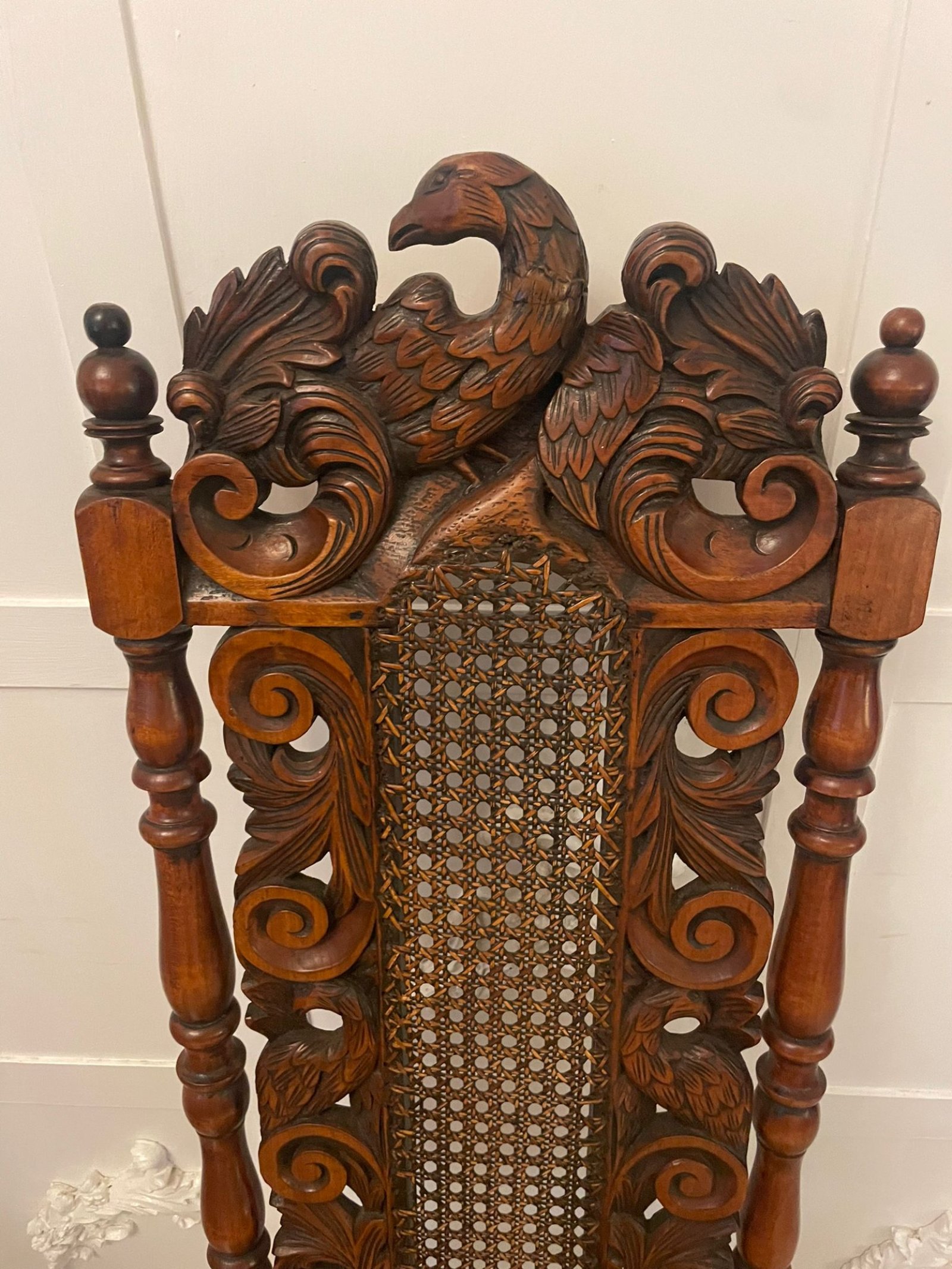 Set of 4 Antique Victorian quality carved walnut dining chairs having a quality carved walnut high back with a super carved eagle to the top, carved scrolls, turned supports and a cane centre, cane seats standing on carved cabriole legs with scroll feet to the front and turned out swept back legs united by turned stretchers and a carved eagle to the front stretcher