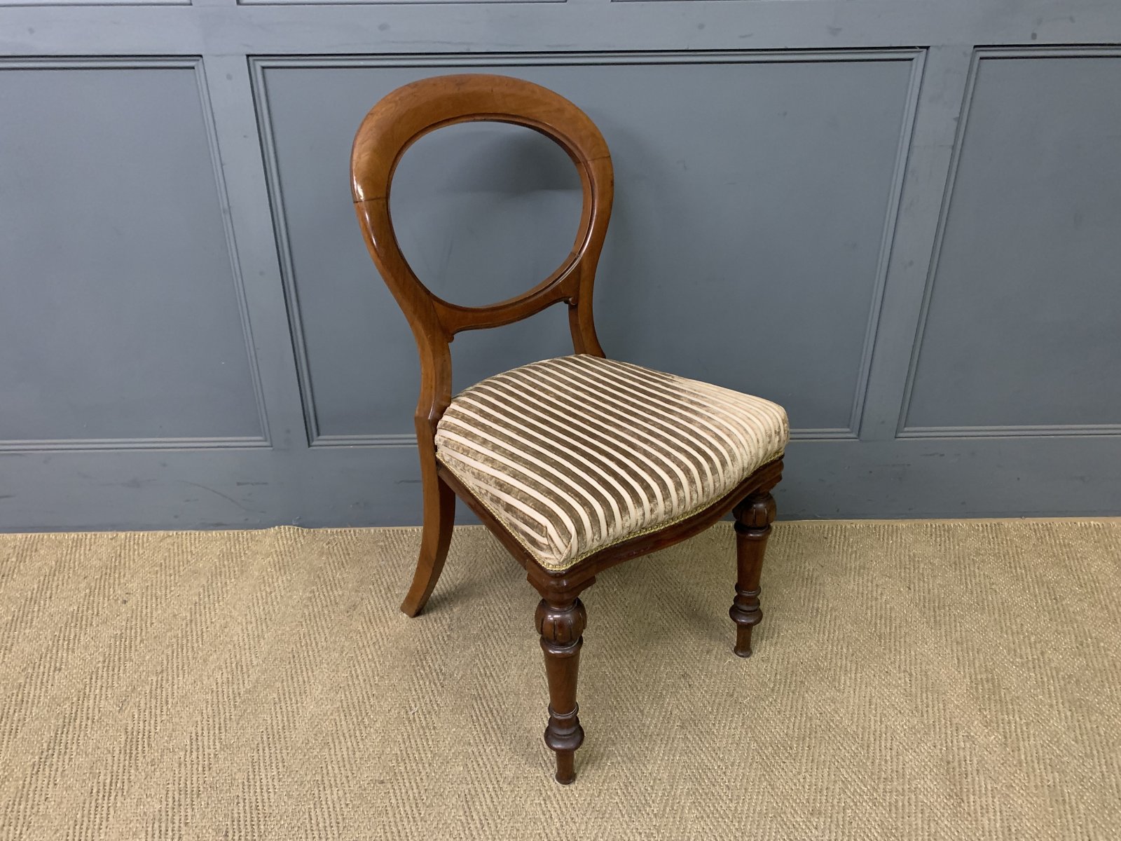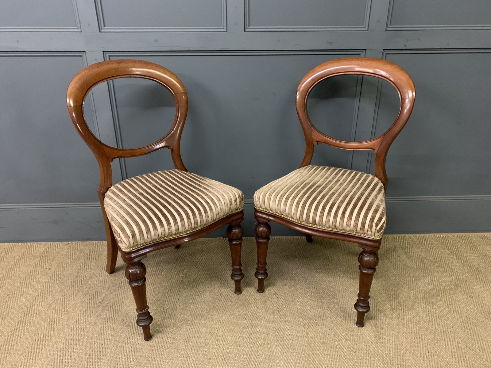 A very good set of Scottish mid-Victorian period dining chairs by Wylie & Lochhead of Glasgow. Of fine construction in solid mahogany with well upholstered seats. With balloon backs and turned front legs. Each chair bearing the makers stamp to the underside. They are of generous proportions, strong and sturdy. Offered for sale in very good original condition, with a good colour and patina, ready to go straight into the home.