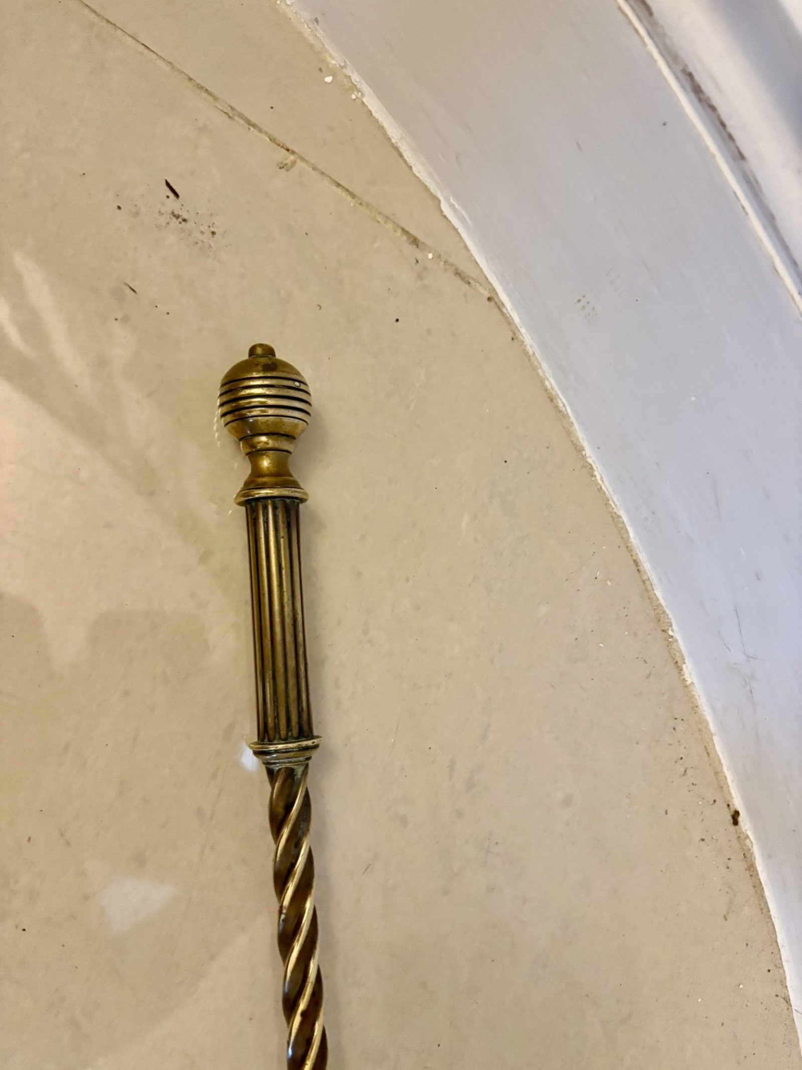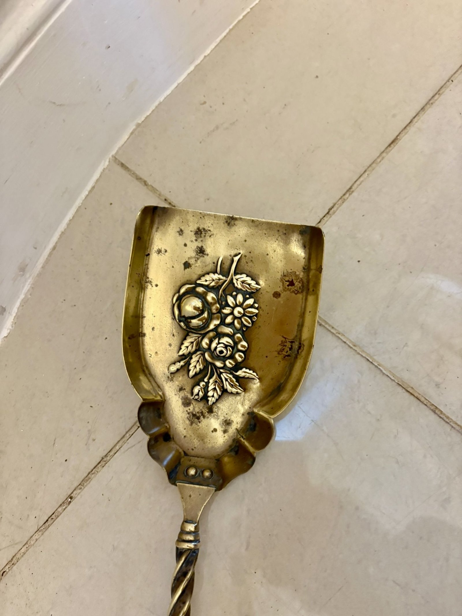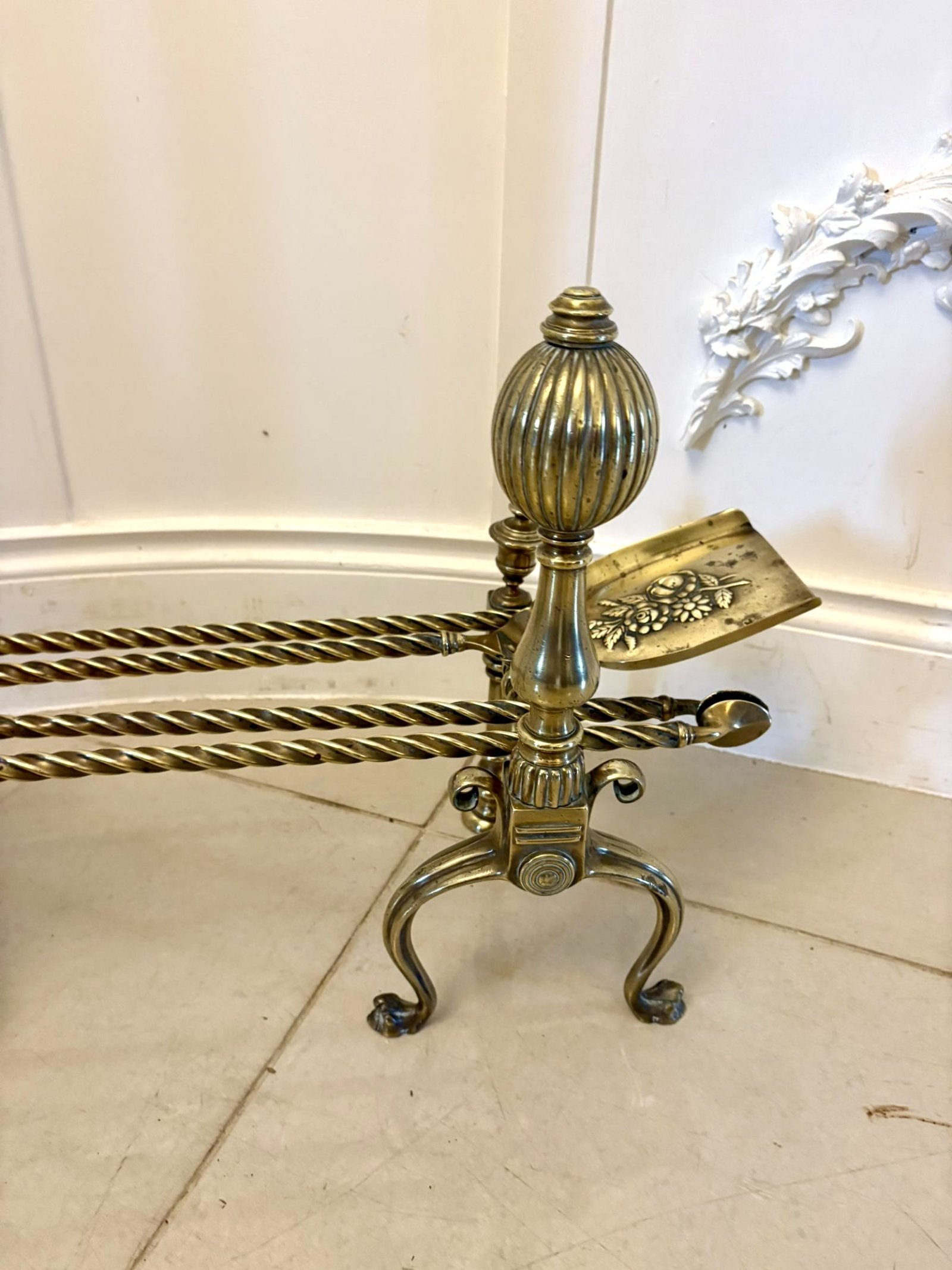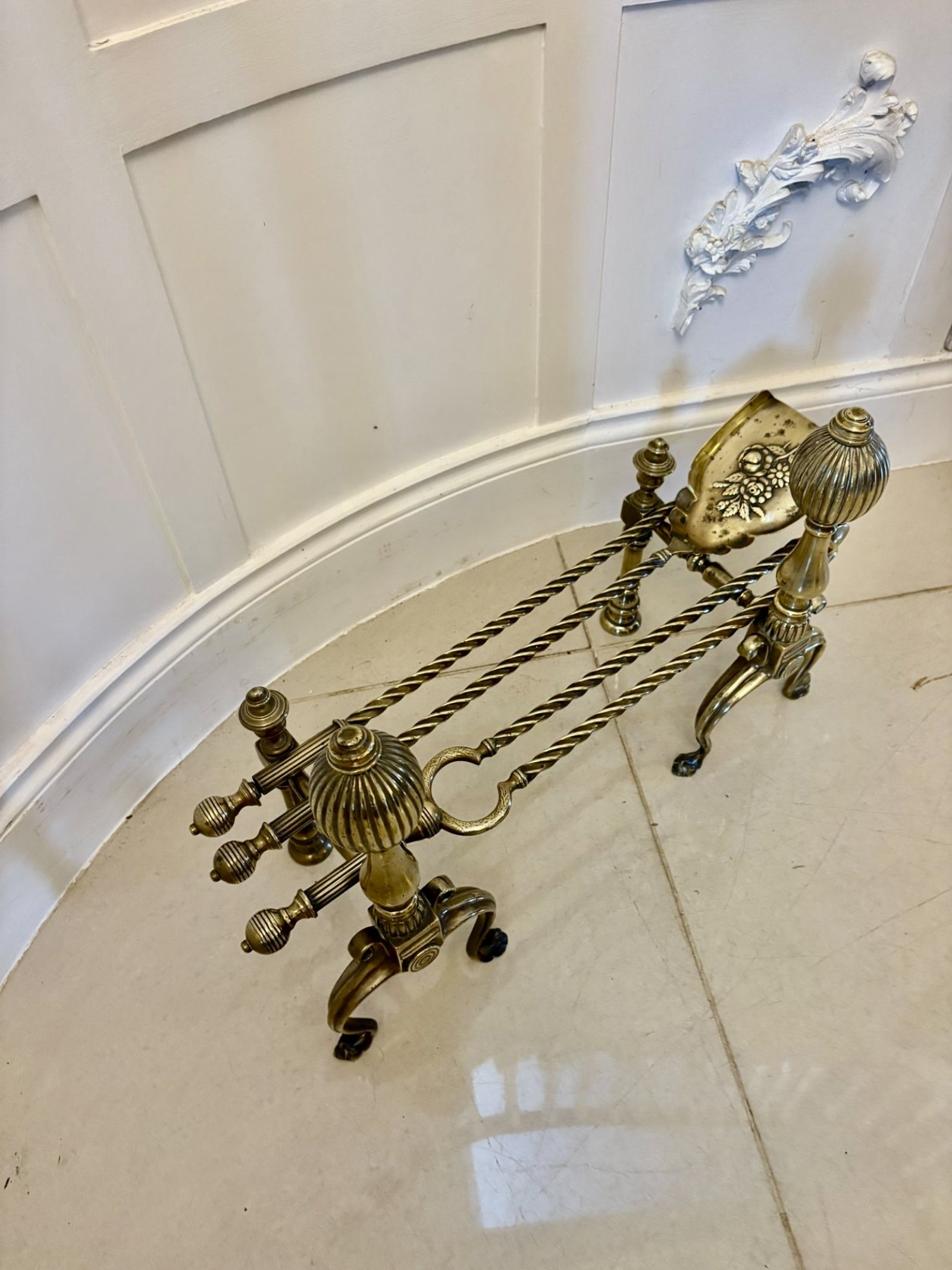Set of Quality Antique Victorian Brass Fire Irons and Dogs
