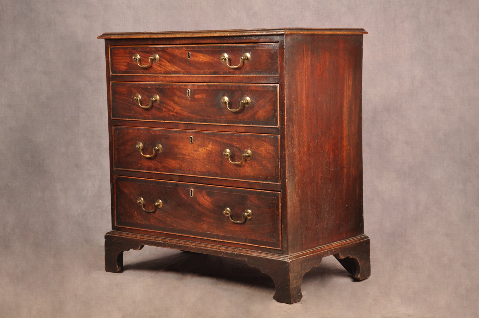 See shipping detailsA Fine 18th Century Mahogany Chest Of Drawers of absolutely wonderful untouched rich warm colour and patina. In finest quality figured Mahogany having extremely fine Box wood stringing and cross banding to the drawer fronts and top, the cockbeading to the edge of the drawers has unusually been made in fruitwood, this has developed a beautiful light glowing colour and burnished patina over the years.