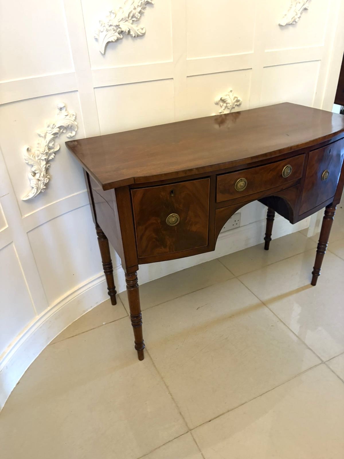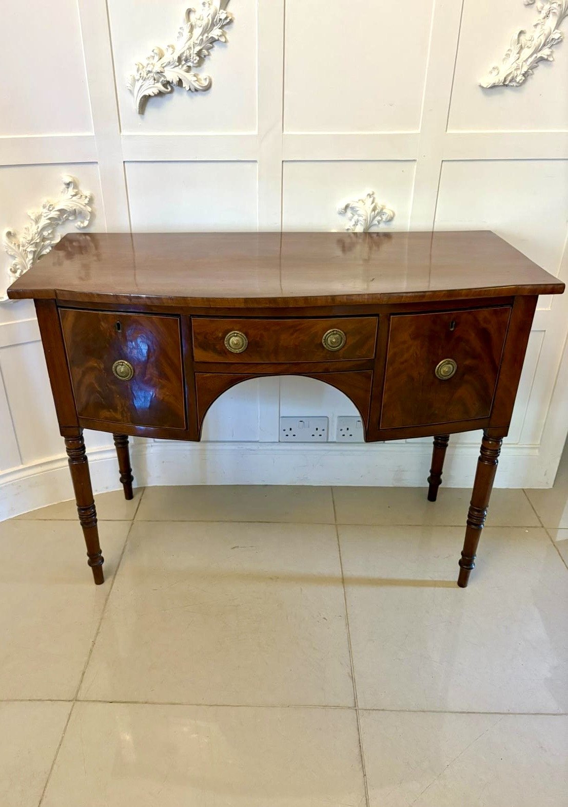 Small Antique George III Quality Figured Mahogany Bow Front Sideboard