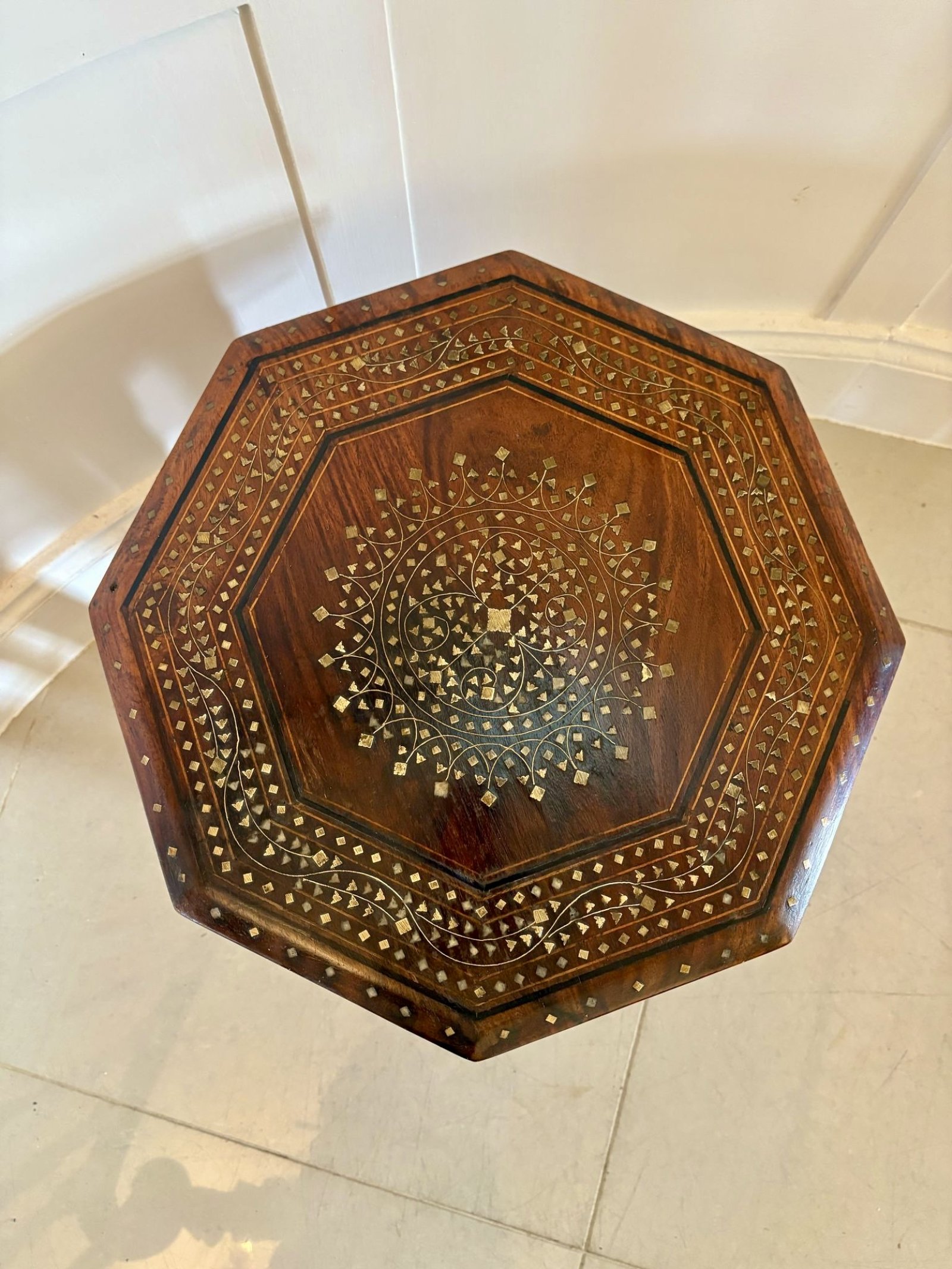Small Antique Quality Brass and Bone Inlaid Indian Teak Table