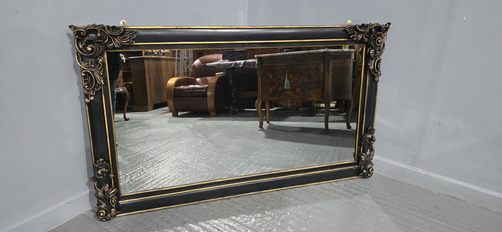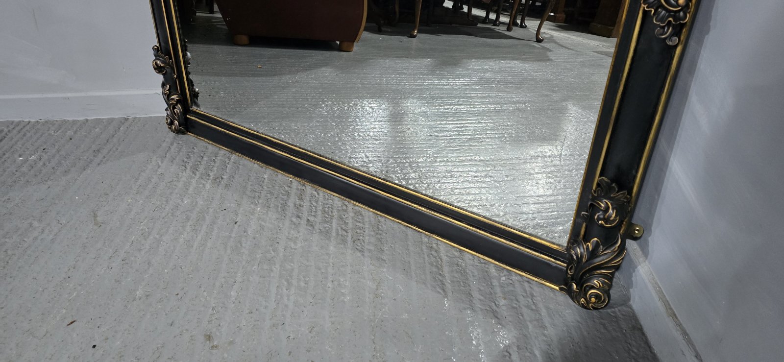 Stylish Victorian ebonised wall mirror, having original glass with some imperfections in moulded and shaped ebonised frame with fine floral carvings to corners. This antique mirror was refinished in the past, now showing minor usage marks, all in very good home ready condition. c1860
