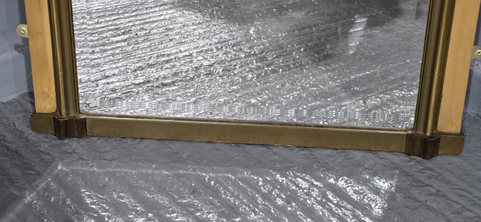 A very attractive 19th century pier mirror, having original bevelled edge mirror with some foxing in gilded and painted frame with centre crest to the top, all in wonderful home ready condition. c1880