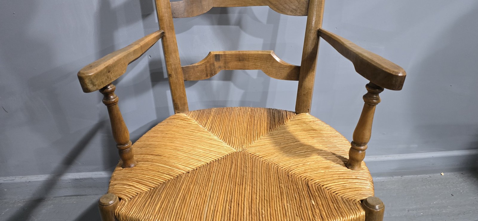 A very nice set of eight French oak dining chairs. With excellent quality rush seats, rare to find matching carvers overall lovely condition.