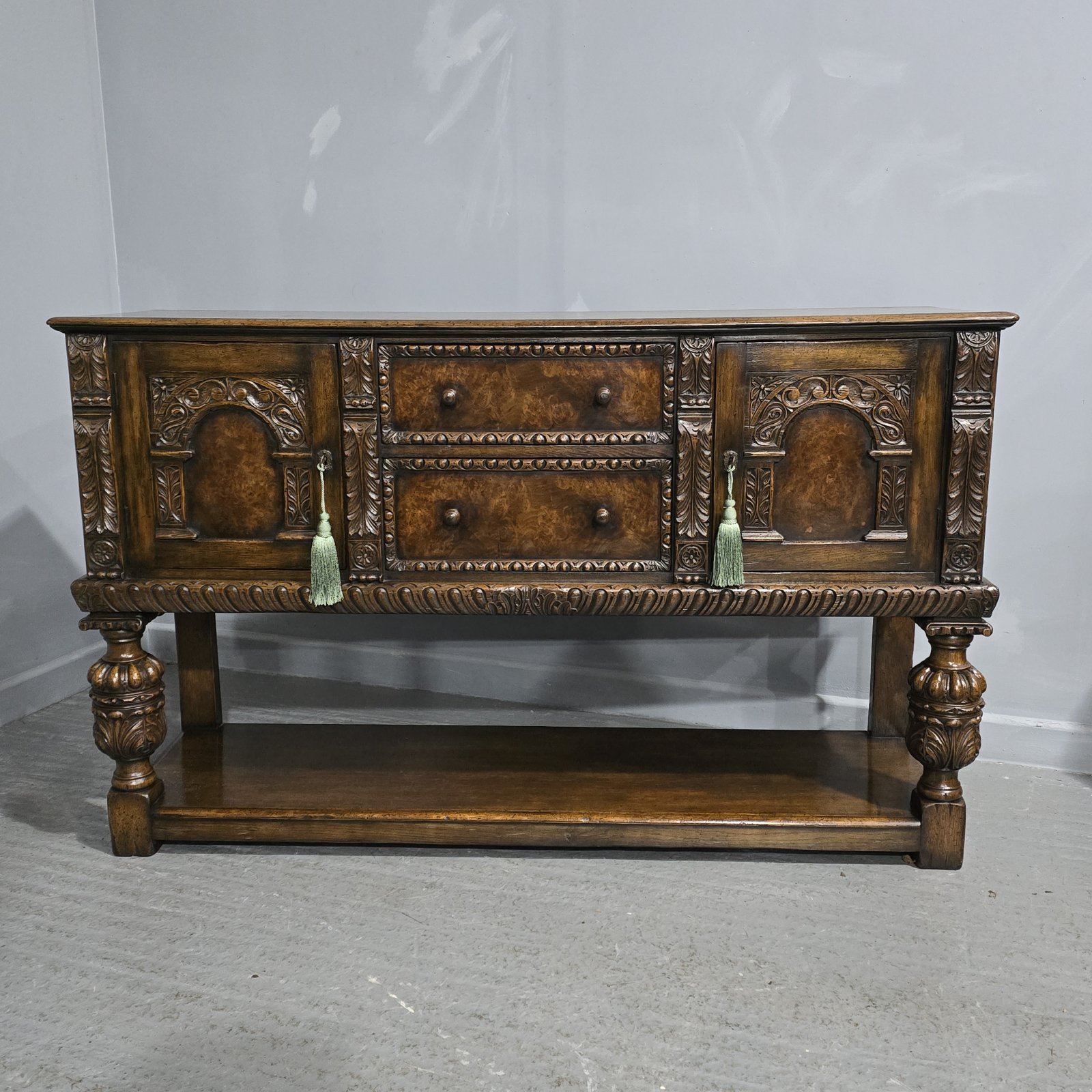 Superb Oak and Burr Walnut Elizabethan Sideboard