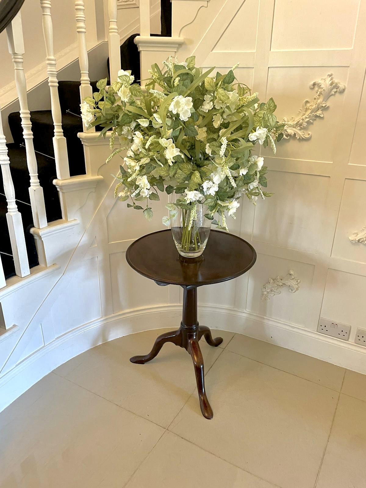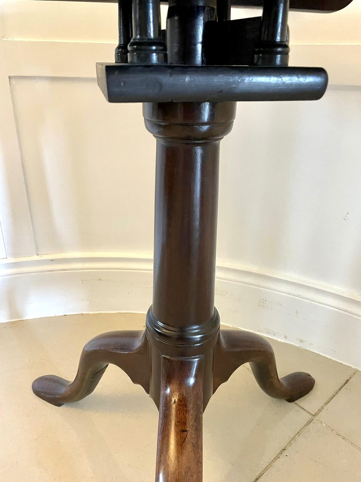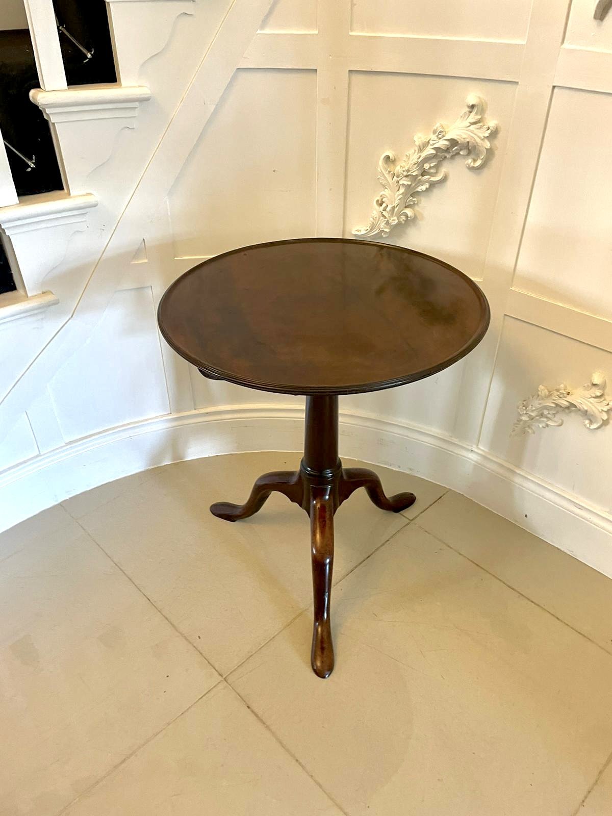 Superb quality antique George III mahogany lamp table having a quality mahogany circular tilt top with a moulded edge supported by a birdcage and a turned tapering pedestal column standing on shaped cabriole legs with pad feet