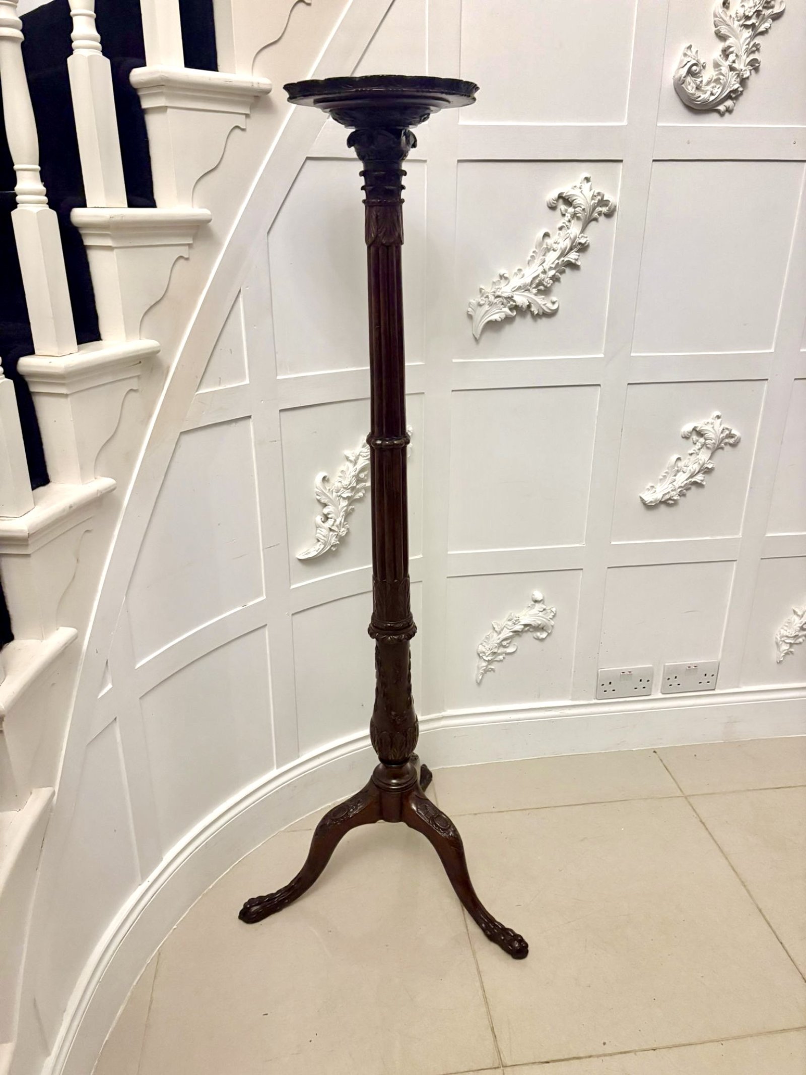 Superior Quality Antique Victorian Carved Mahogany Torchère / Plant Stand