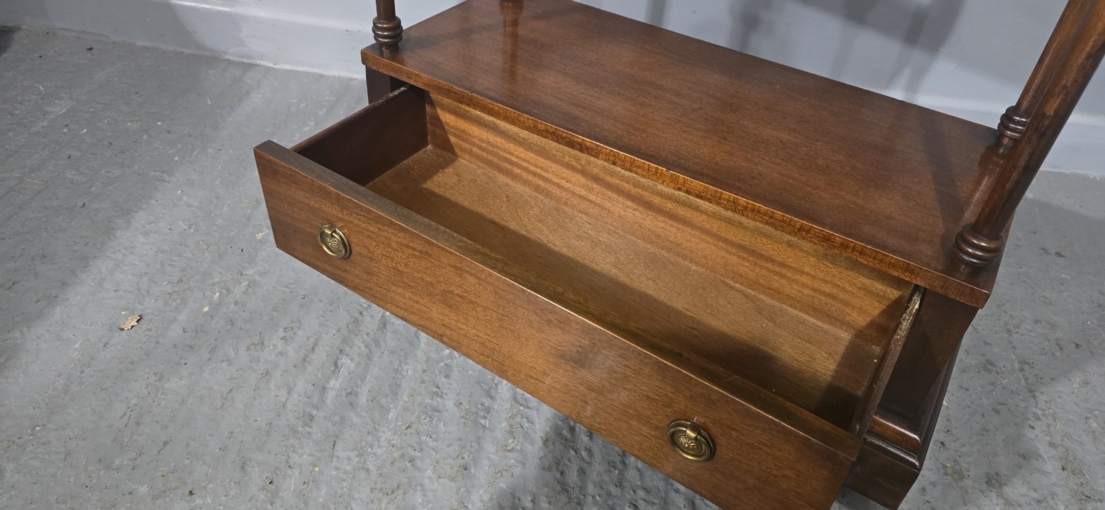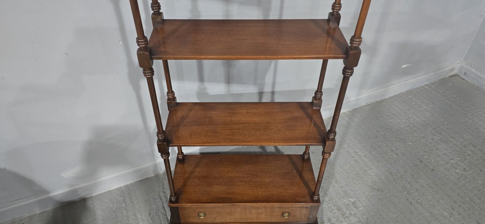 Very nice tall four tier mahogany stand with a full width drawer to the bottom, in very nice overall condition.
