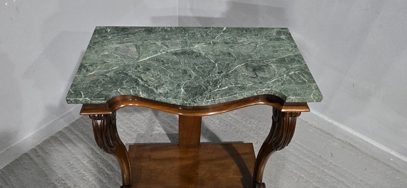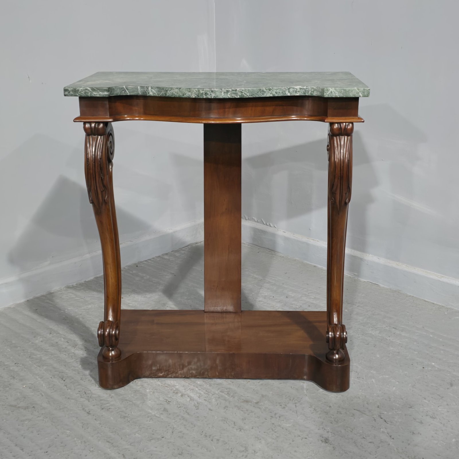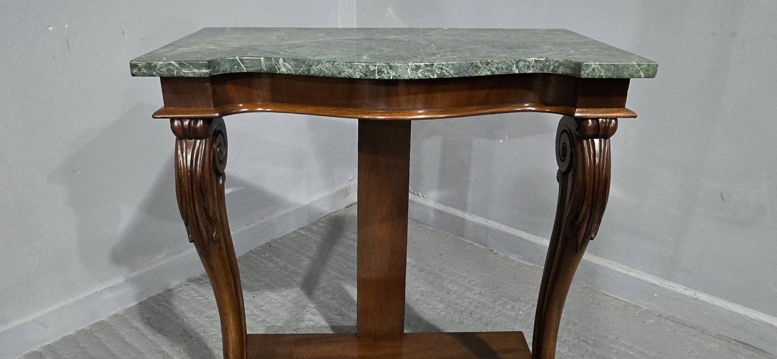 A wonderful mahogany console table with green varigated marble top, in excellent overall condition.